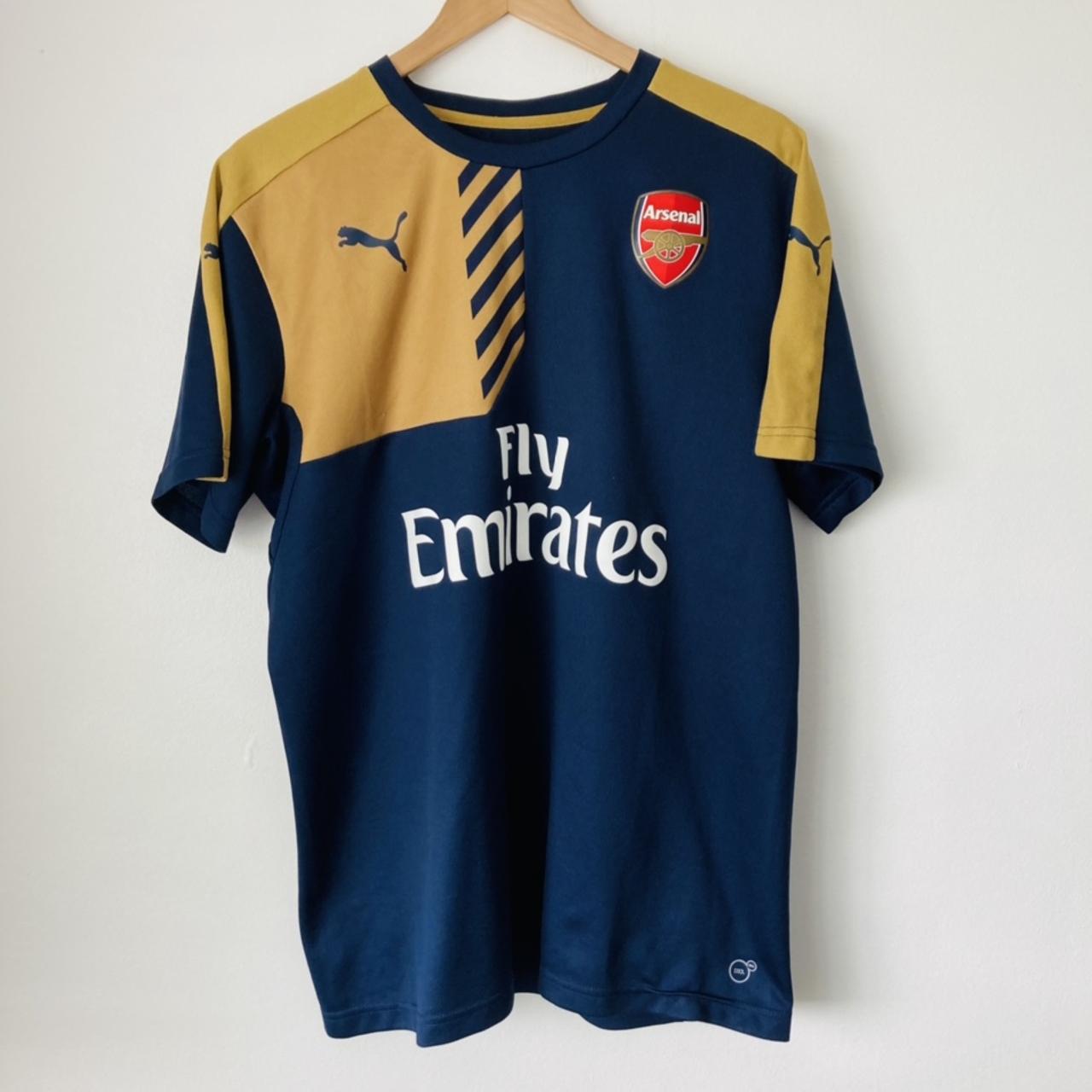 This navy Arsenal training football shirt from the 2015/2016 season is available in adult size XL. It has measurements of 21.5" for the chest and 28" for the length, but may fit more comfortably as a large. The shirt is in excellent condition and is being sold by the original owner.
