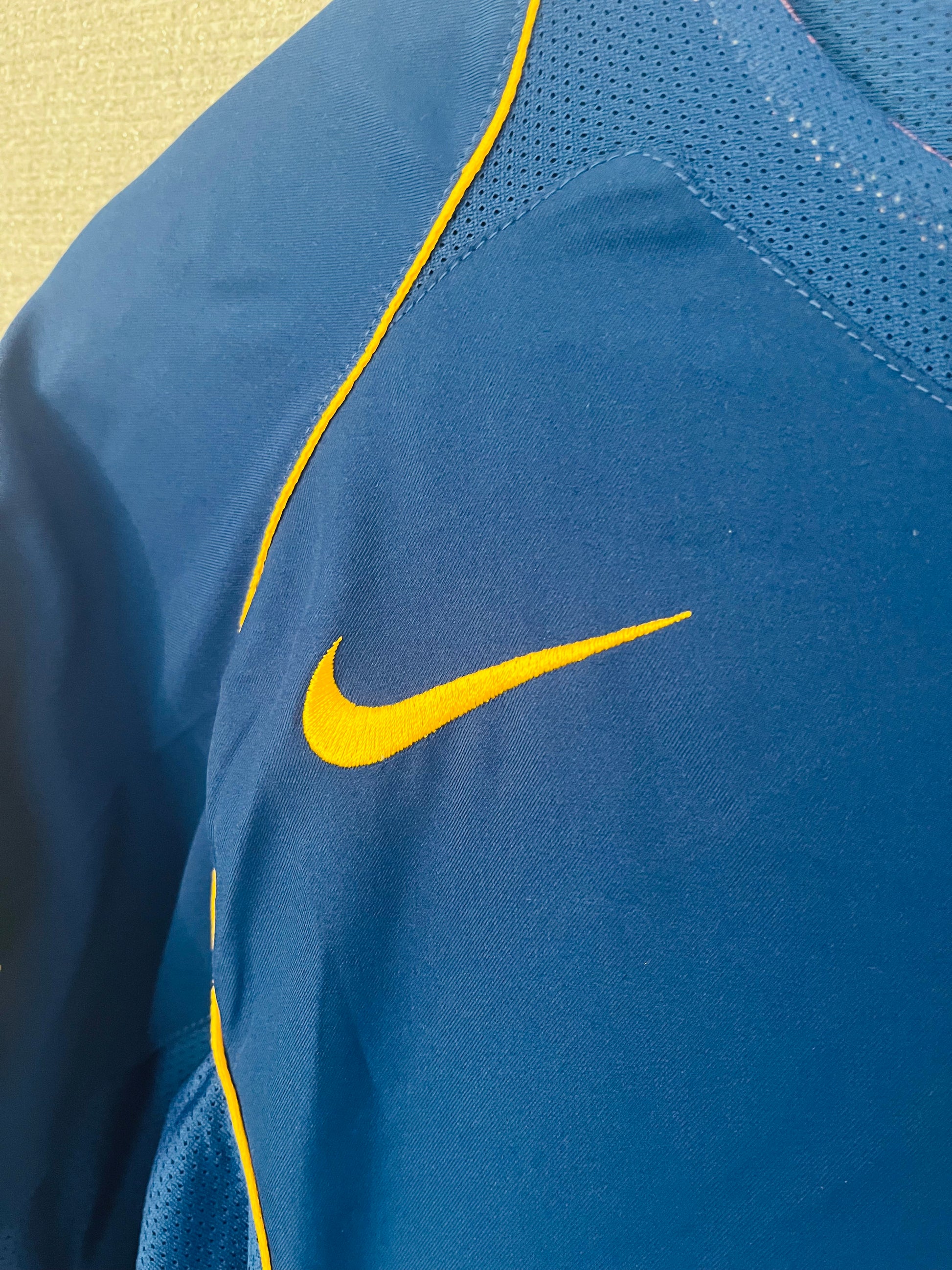 This shirt has seen some wear but is still in good condition. There may be some minor flaws such as light fading, small pulls, or faint stains, but these do not detract from the overall appearance or wearability of the shirt. A great choice for those looking to own a piece of football history at an accessible price.