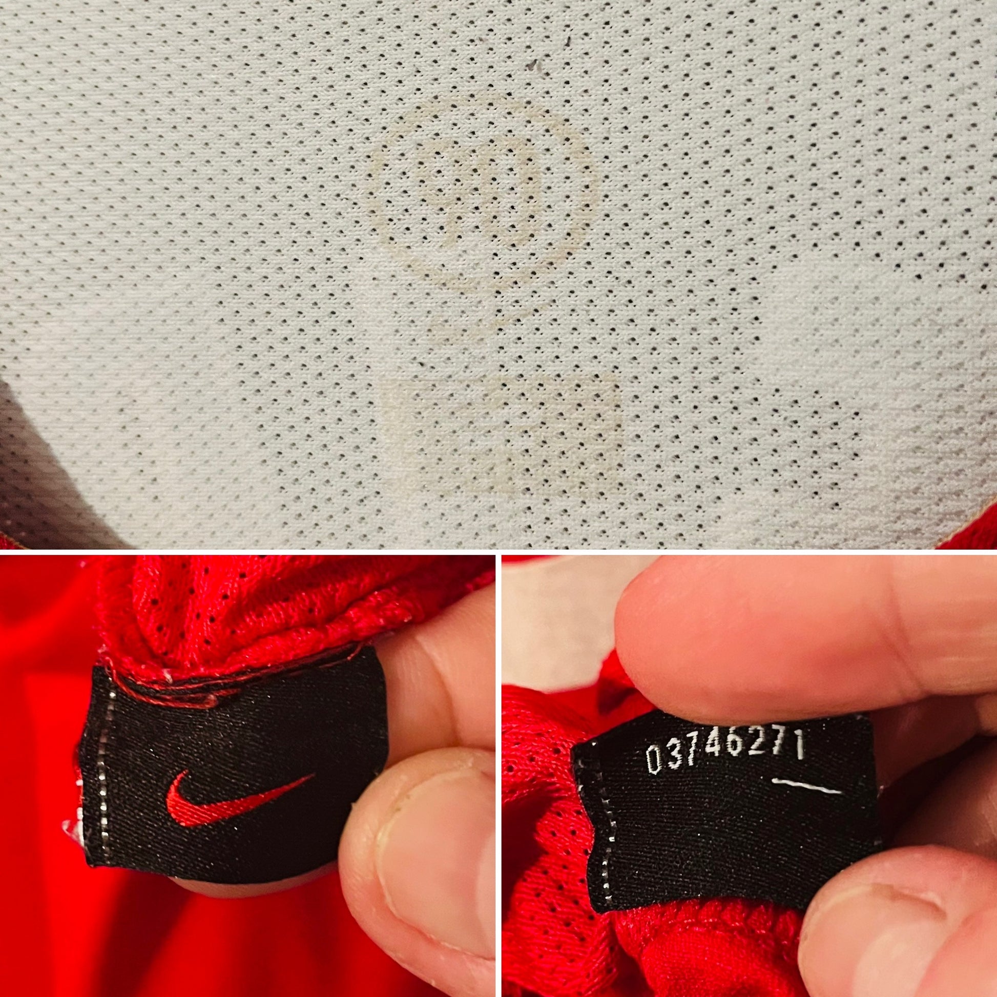 This shirt has seen some wear but is still in good condition. There may be some minor flaws such as light fading, small pulls, or faint stains, but these do not detract from the overall appearance or wearability of the shirt. A great choice for those looking to own a piece of football history at an accessible price.