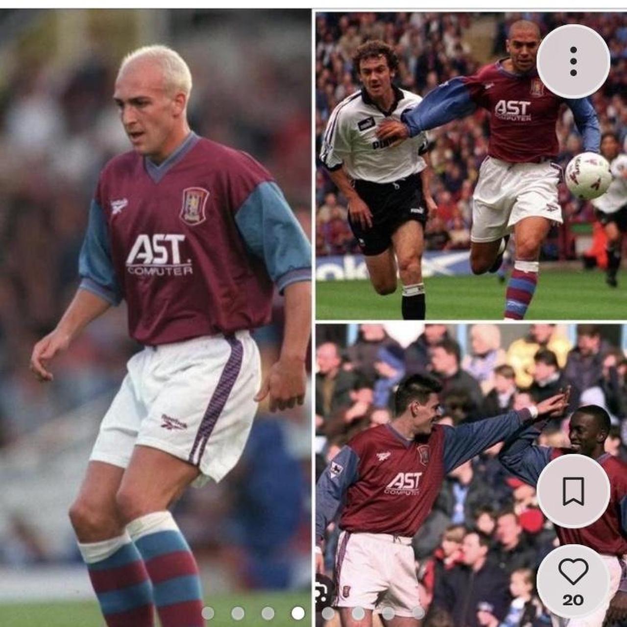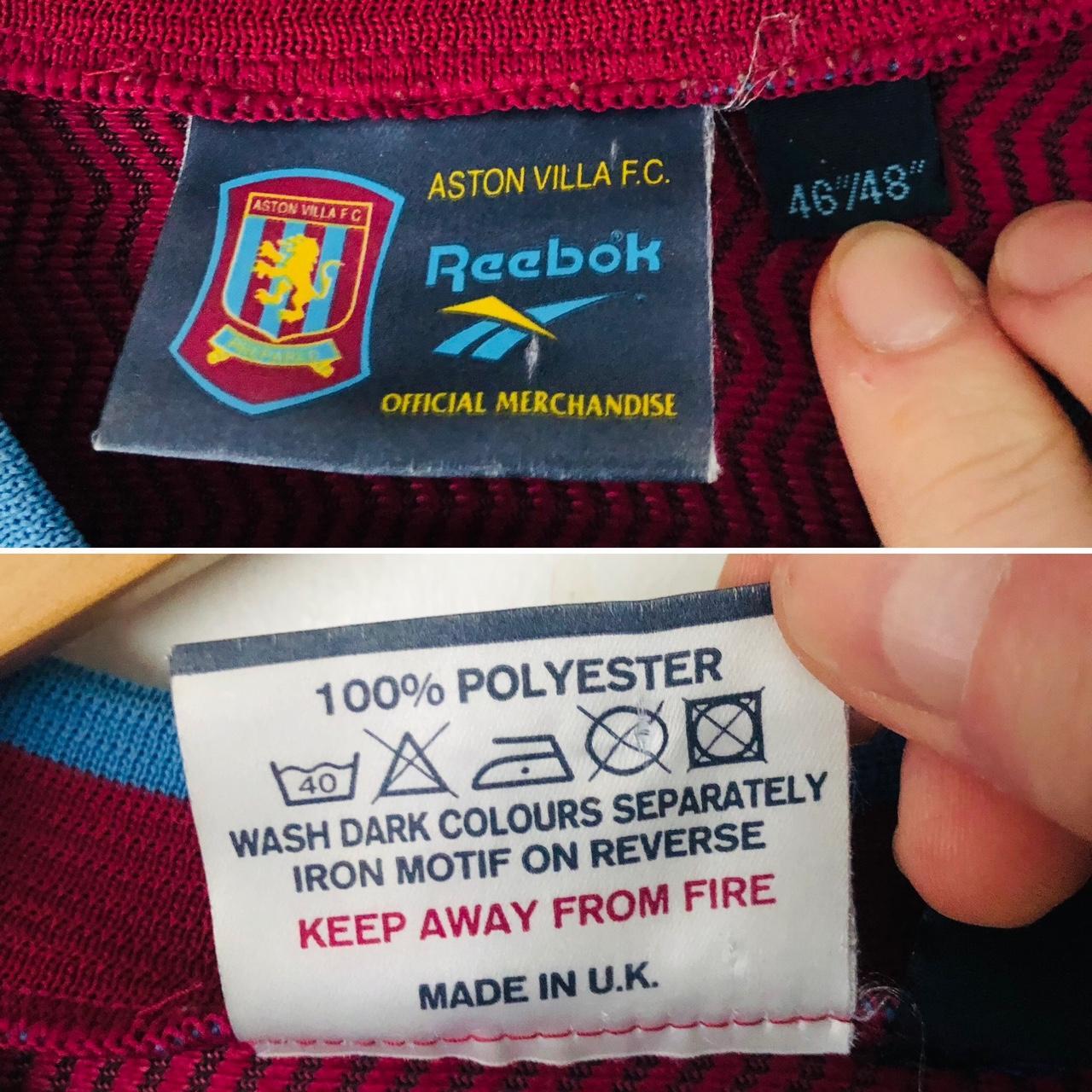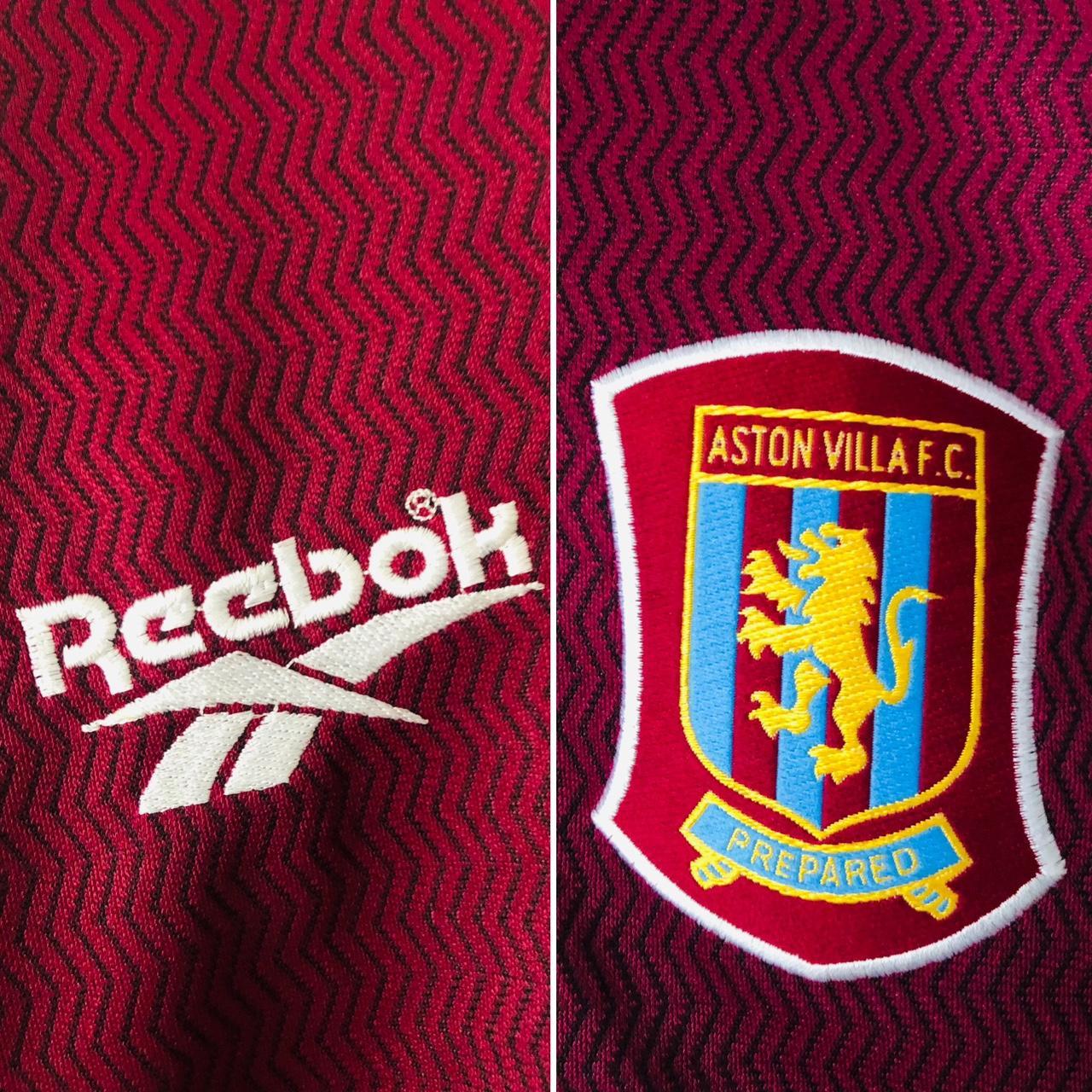 This Aston Villa home #football shirt from the 1997/98 season is sized adult XXL (46/48”) and measures 25” from pit to pit and 28.5” in length. Though it may have a couple of minor bobbles, it remains in excellent condition.