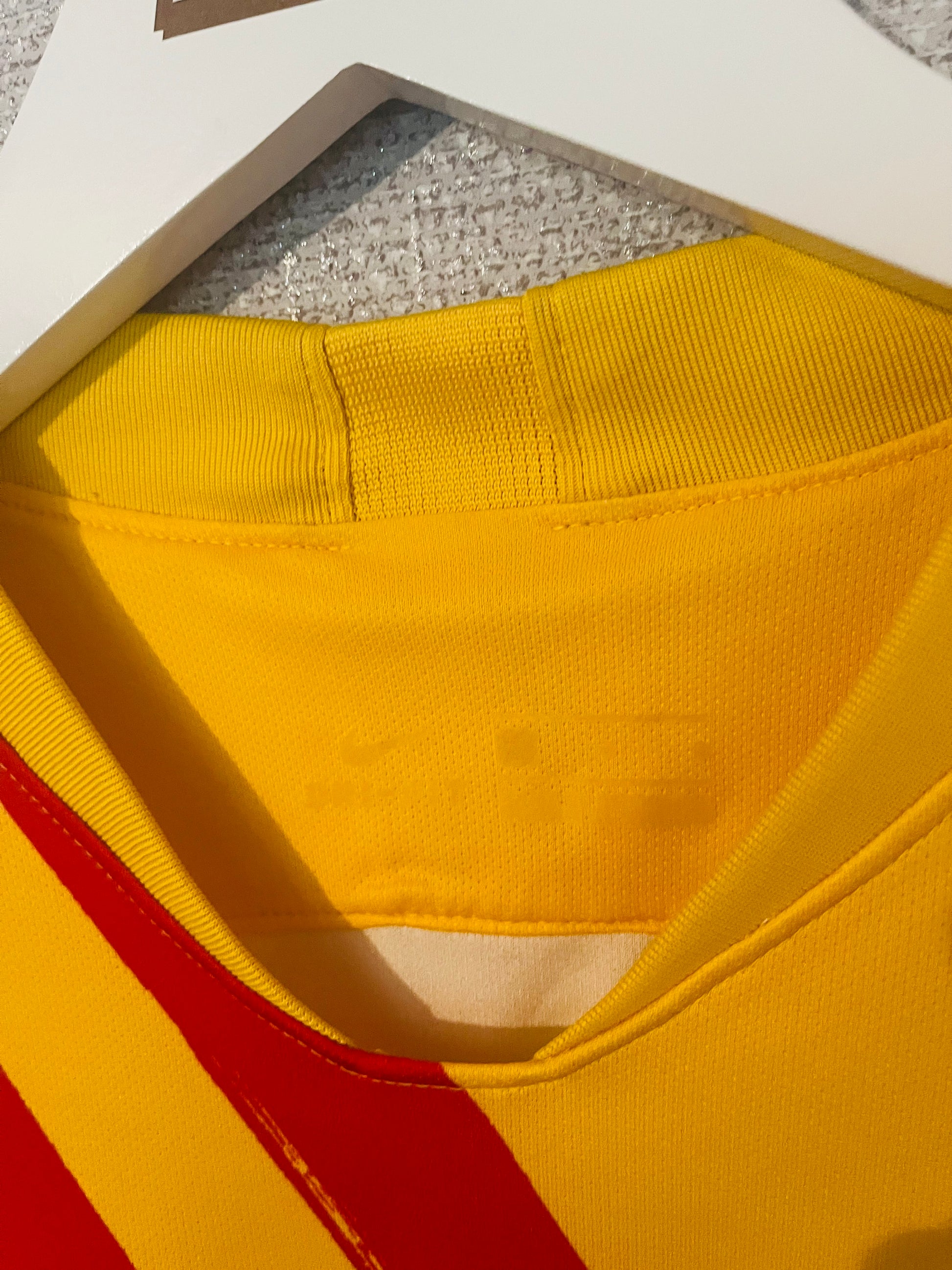 This shirt has seen some wear but is still in good condition. There may be some minor flaws such as light fading, small pulls, or faint stains, but these do not detract from the overall appearance or wearability of the shirt. A great choice for those looking to own a piece of football history at an accessible price.