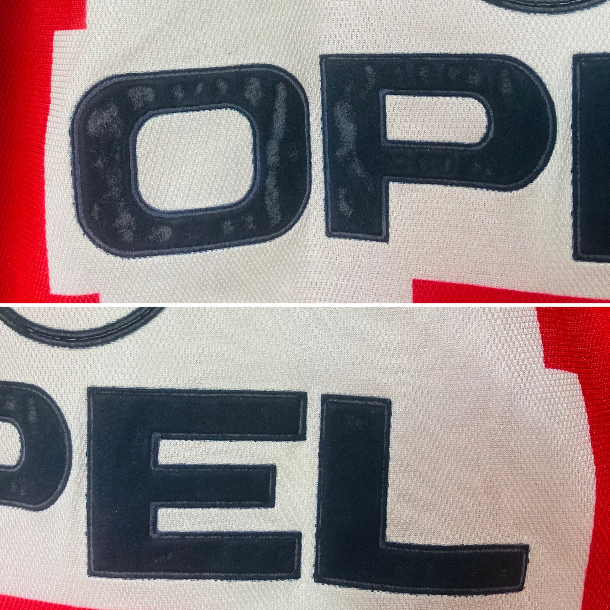This shirt has seen some wear but is still in good condition. There may be some minor flaws such as light fading, small pulls, or faint stains, but these do not detract from the overall appearance or wearability of the shirt. A great choice for those looking to own a piece of football history at an accessible price.