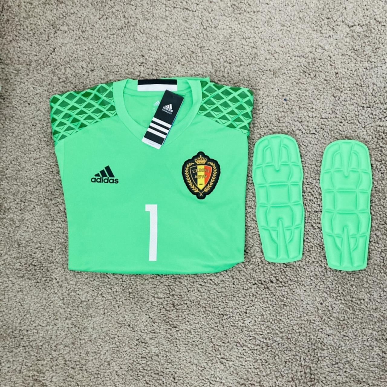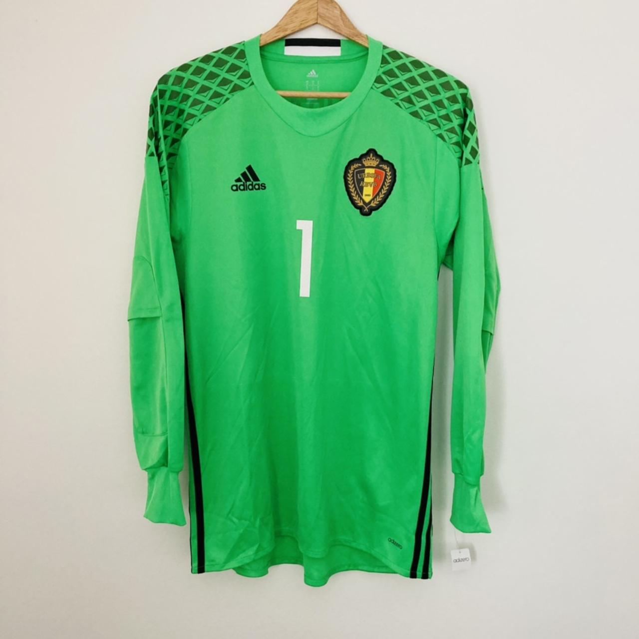 This Belgium goalkeeper football shirt from the 2016 season is a must-have for any fan. Featuring Thibaut Courtois's #1 and made with adi zero technology, it's in perfect, brand new condition. Adult size medium, with a chest measurement of 20 inches and a length of 30 inches. Don't miss this rare find - BNWTs included.