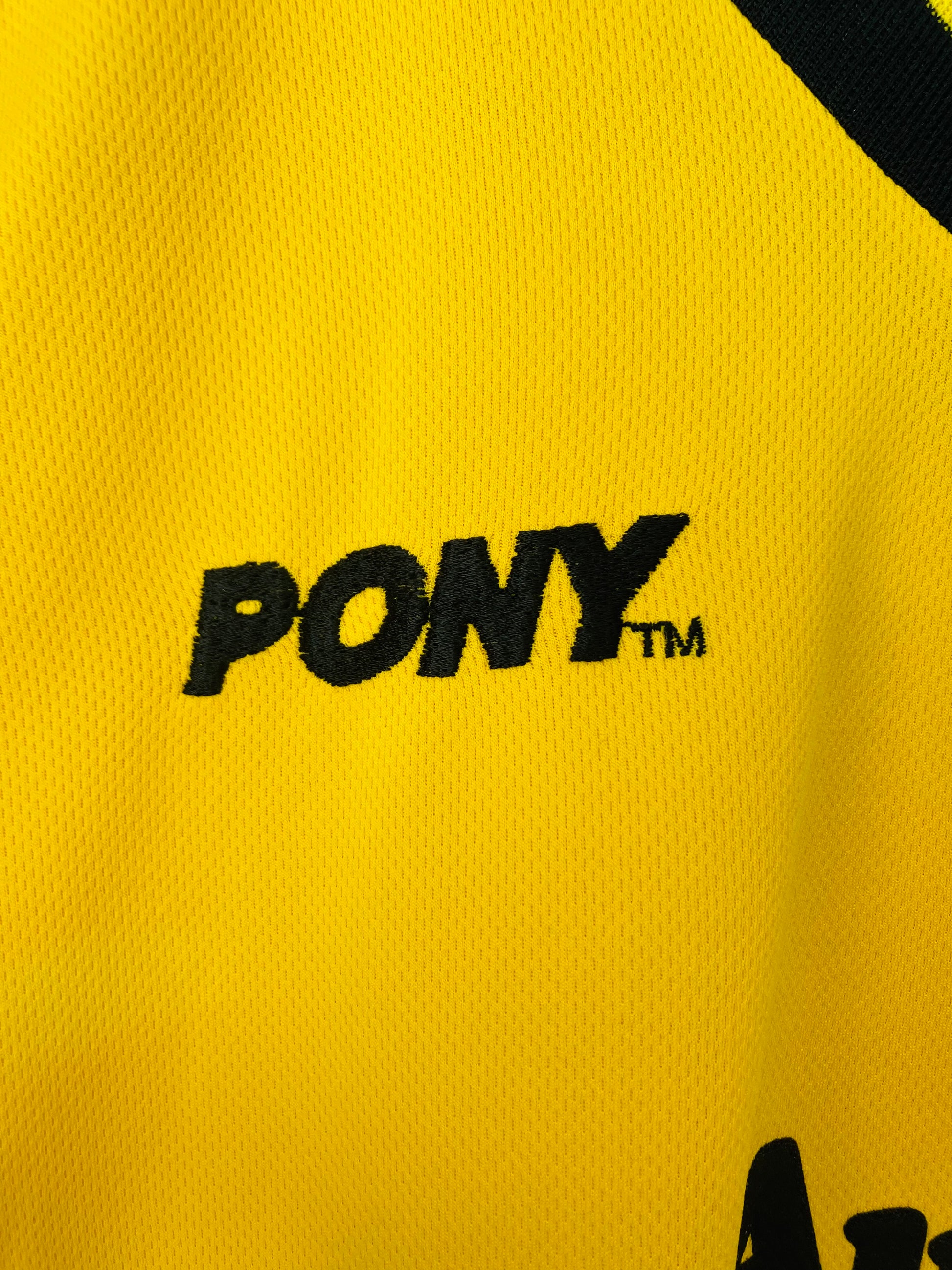 This shirt has seen some wear but is still in good condition. There may be some minor flaws such as light fading, small pulls, or faint stains, but these do not detract from the overall appearance or wearability of the shirt. A great choice for those looking to own a piece of football history at an accessible price.