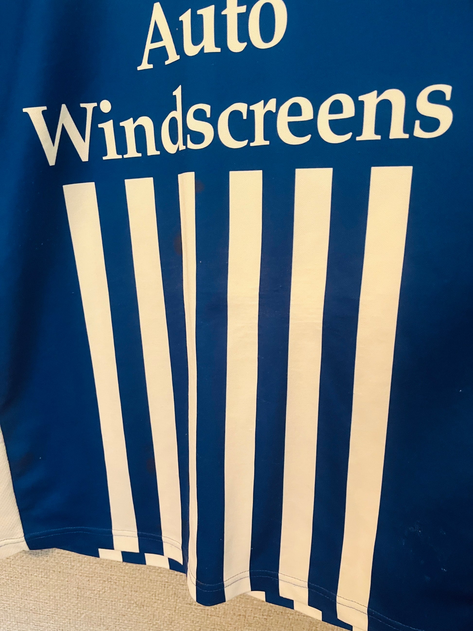 This shirt has seen some wear but is still in good condition. There may be some minor flaws such as light fading, small pulls, or faint stains, but these do not detract from the overall appearance or wearability of the shirt. A great choice for those looking to own a piece of football history at an accessible price.