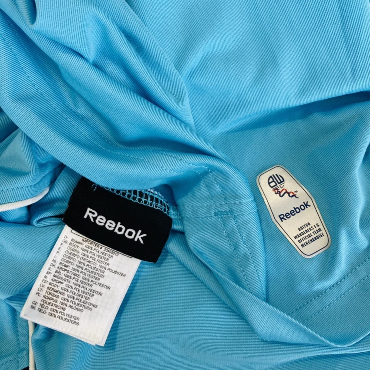 This authentic Bolton Wanderers 2007/2008 Blue Goalkeeper Shirt (XL) is a classic, vintage piece that showcases the team's history in a truthful manner. It features the official Reebok logo and measures 22.5" in the chest and 29" in length. The long-sleeved shirt is in excellent condition.