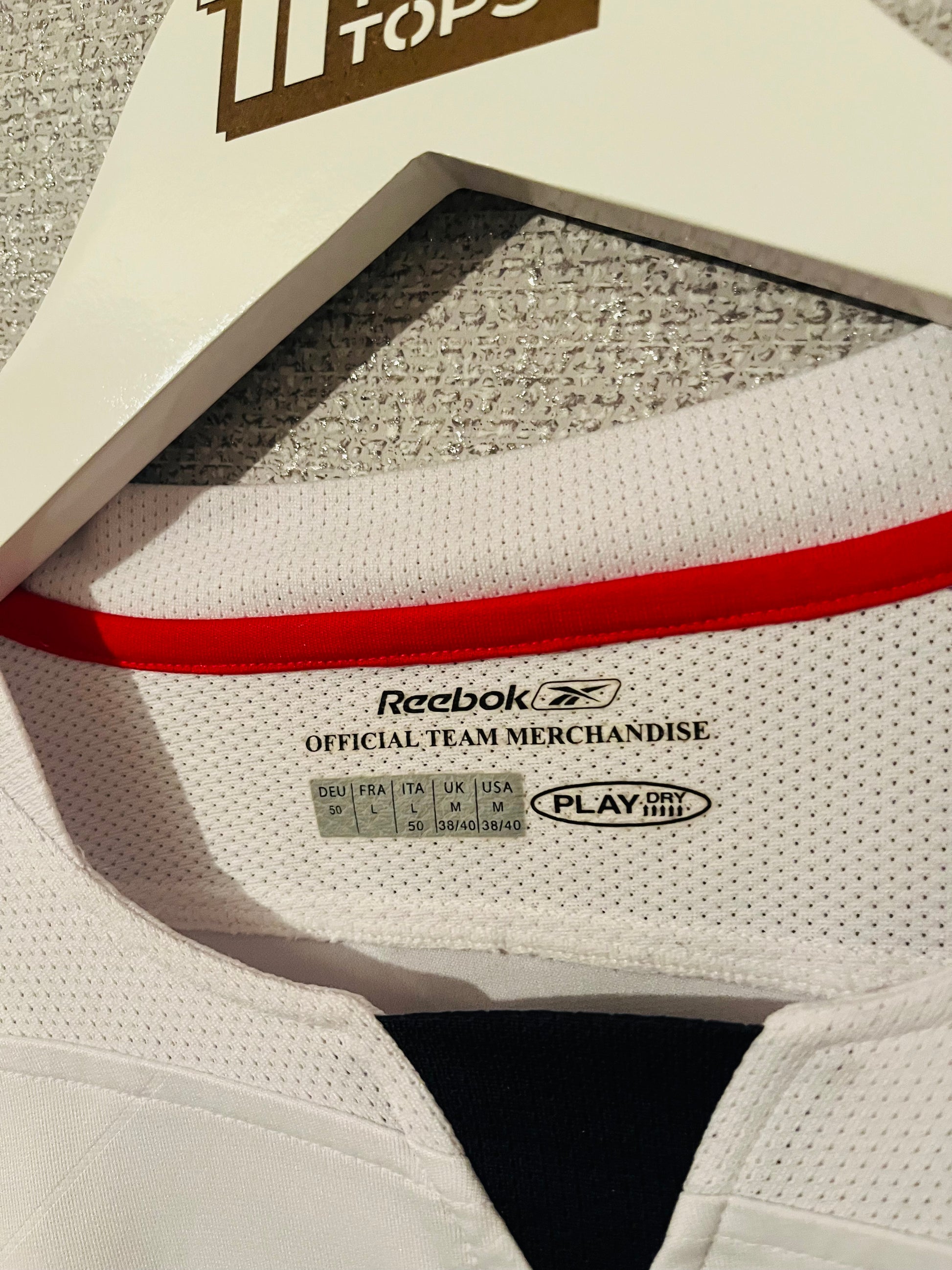 This shirt has seen some wear but is still in good condition. There may be some minor flaws such as light fading, small pulls, or faint stains, but these do not detract from the overall appearance or wearability of the shirt. A great choice for those looking to own a piece of football history at an accessible price.