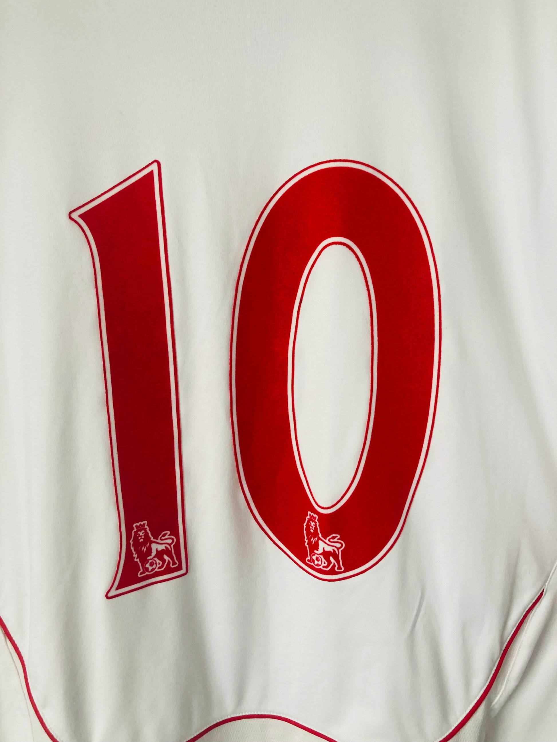 This shirt has seen some wear but is still in good condition. There may be some minor flaws such as light fading, small pulls, or faint stains, but these do not detract from the overall appearance or wearability of the shirt. A great choice for those looking to own a piece of football history at an accessible price.