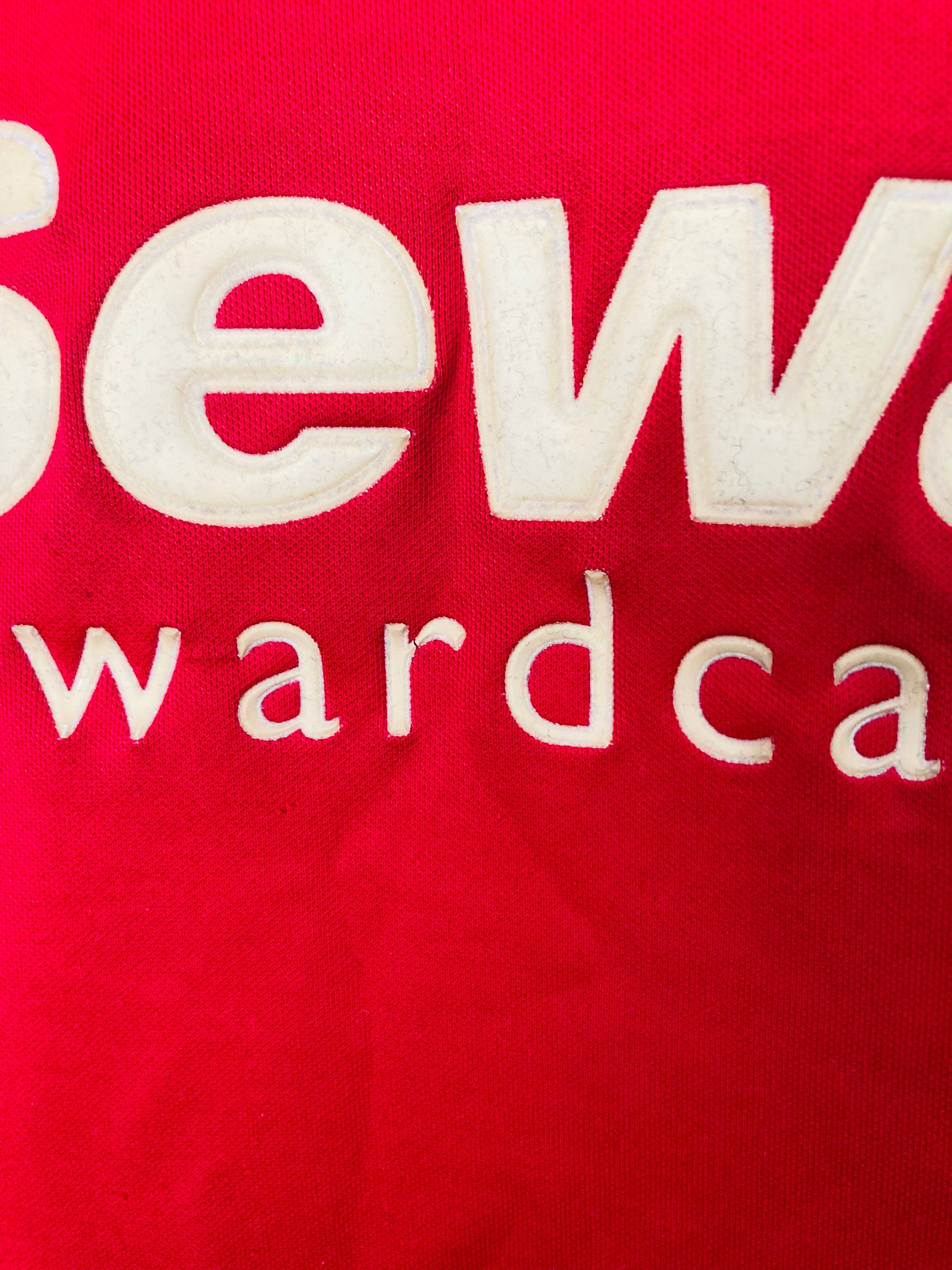 This shirt has seen some wear but is still in good condition. There may be some minor flaws such as light fading, small pulls, or faint stains, but these do not detract from the overall appearance or wearability of the shirt. A great choice for those looking to own a piece of football history at an accessible price.