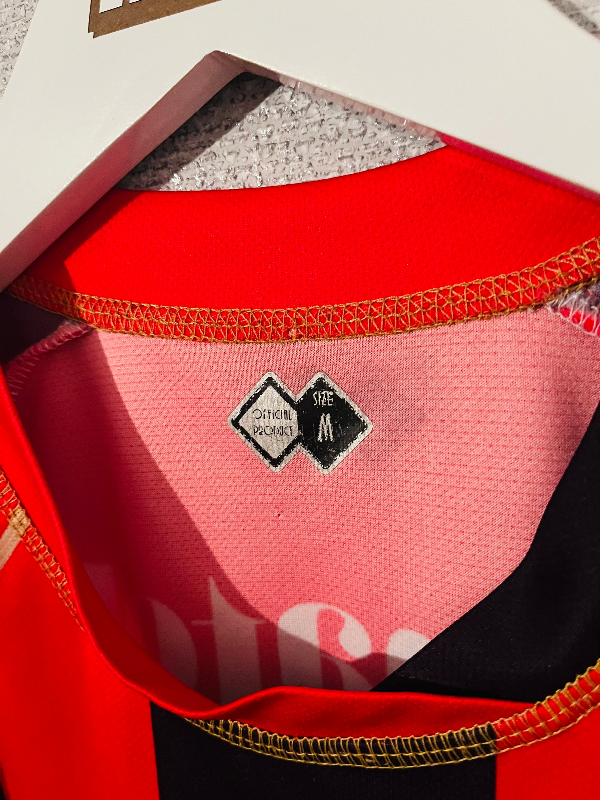 This shirt was worn by a player during an official match. It may show signs of use such as slight wear, grass stains, or minor fabric pulls, which only add to its authenticity and collectible value. These shirts are often one-of-a-kind and a prized piece of football history.