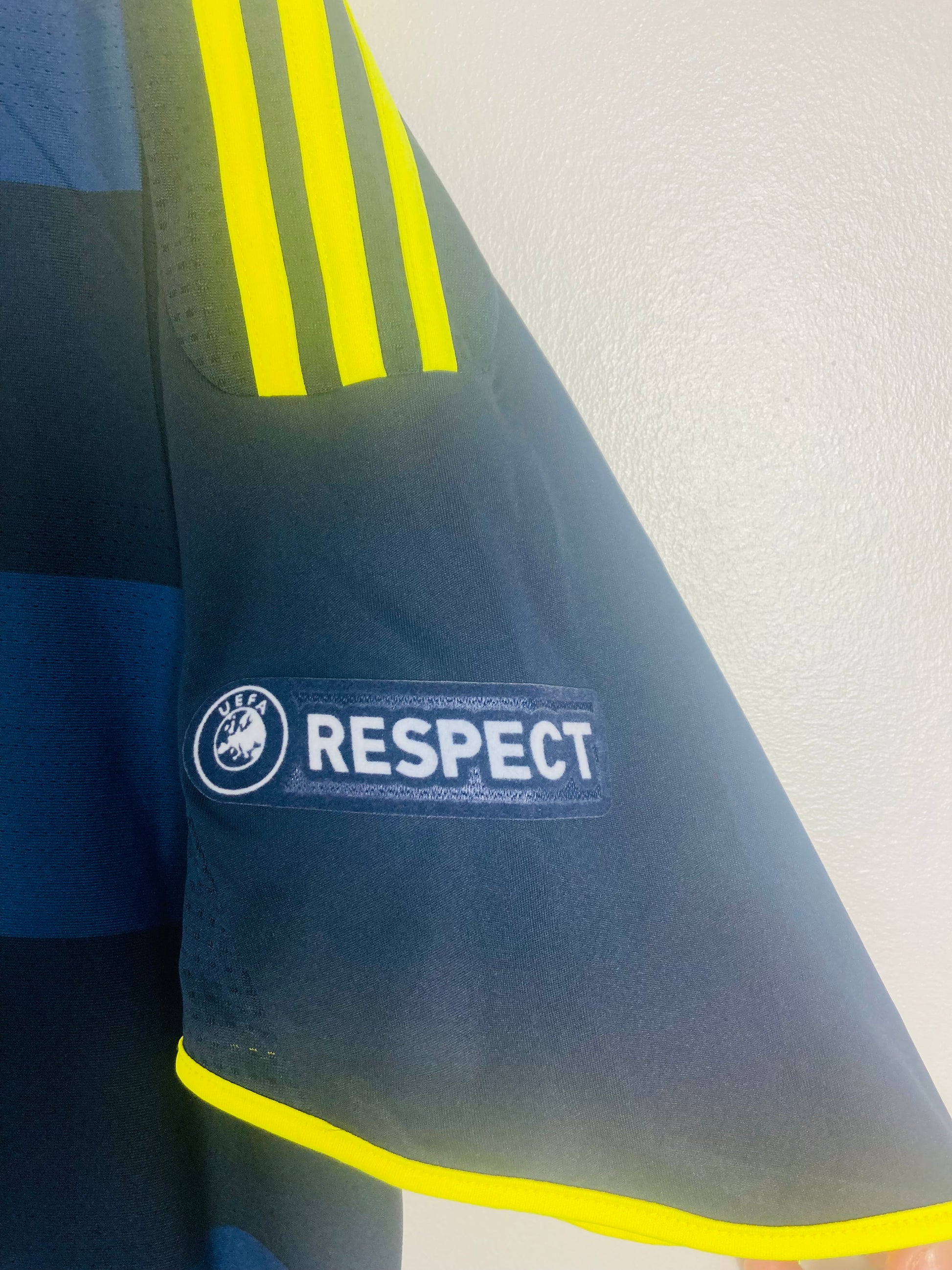 This shirt was worn by a player during an official match. It may show signs of use such as slight wear, grass stains, or minor fabric pulls, which only add to its authenticity and collectible value. These shirts are often one-of-a-kind and a prized piece of football history.