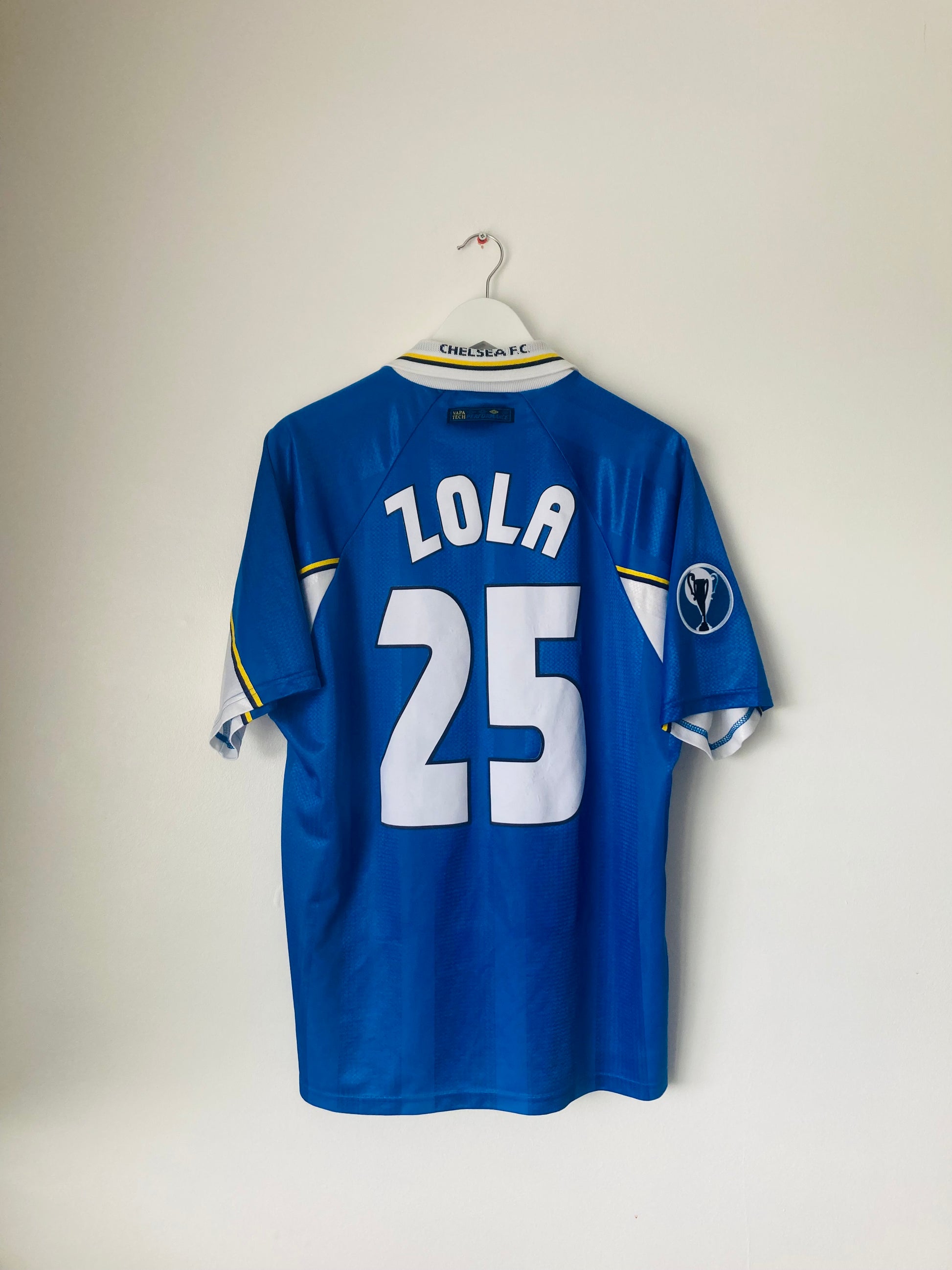 Cup winners cup style Gianfranco Zola 25 on the back in felt/flock material and cup winners cup arm patch