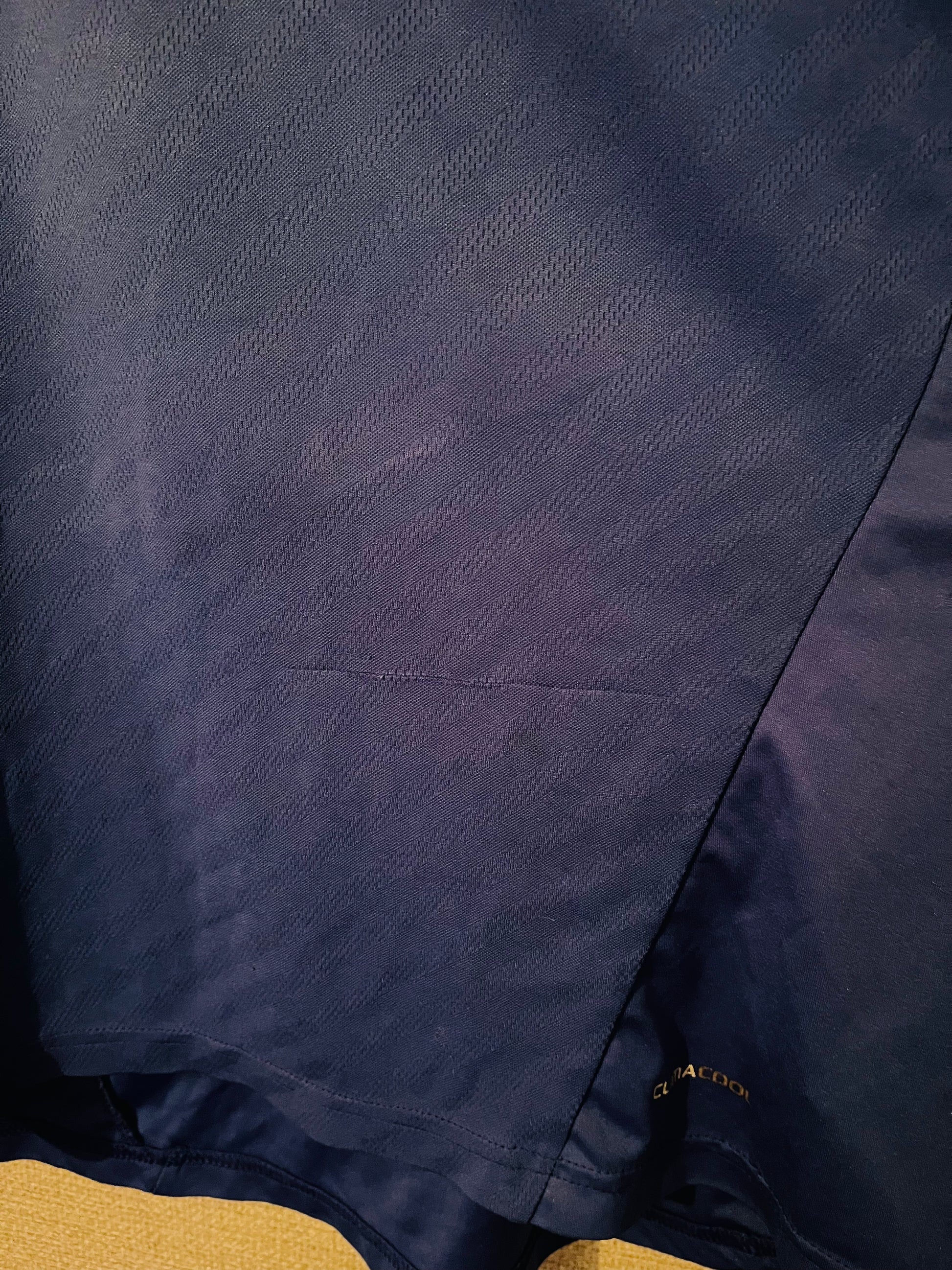 This shirt has seen some wear but is still in good condition. There may be some minor flaws such as light fading, small pulls, or faint stains, but these do not detract from the overall appearance or wearability of the shirt. A great choice for those looking to own a piece of football history at an accessible price.
