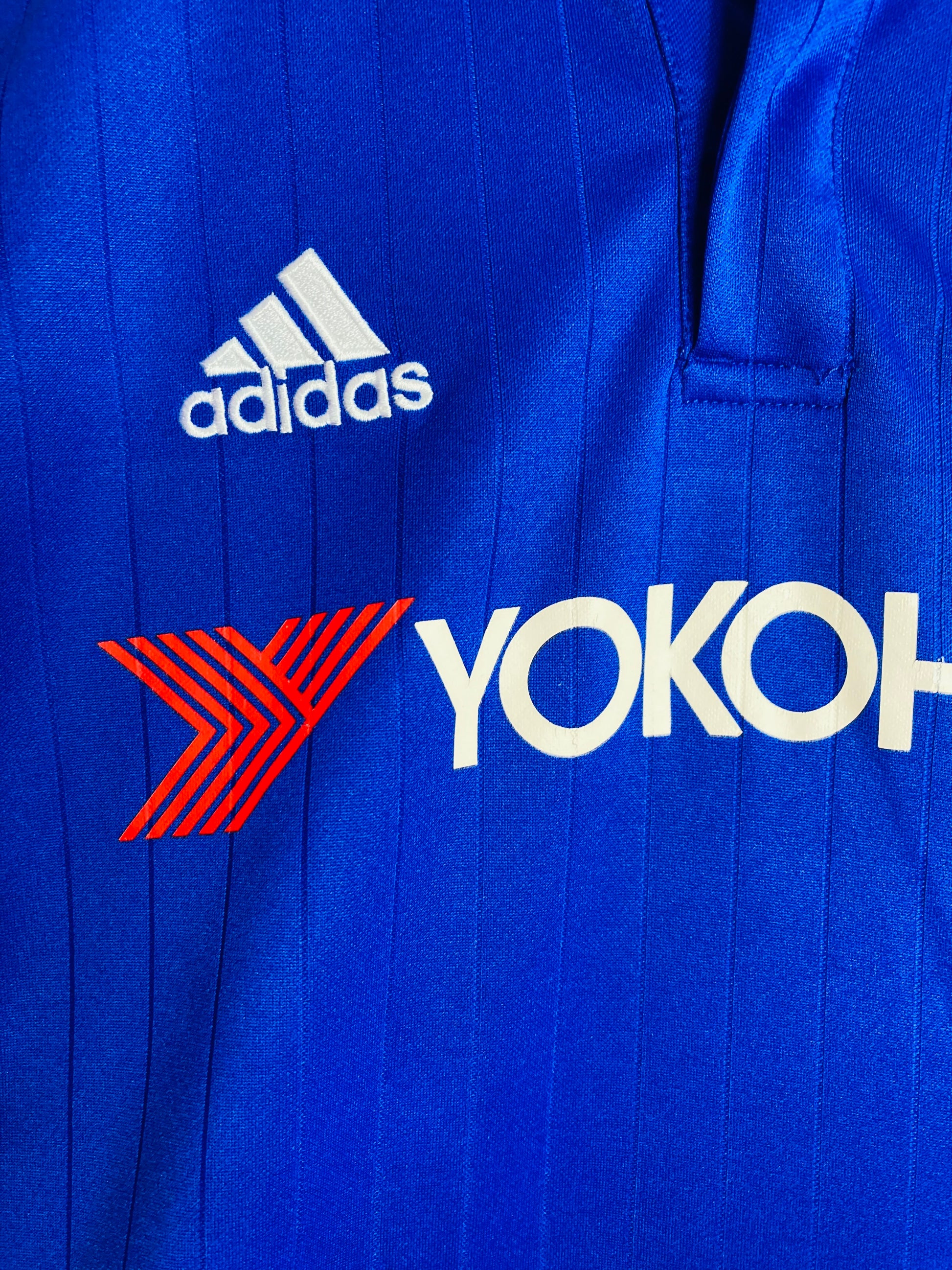 This shirt has seen some wear but is still in good condition. There may be some minor flaws such as light fading, small pulls, or faint stains, but these do not detract from the overall appearance or wearability of the shirt. A great choice for those looking to own a piece of football history at an accessible price.