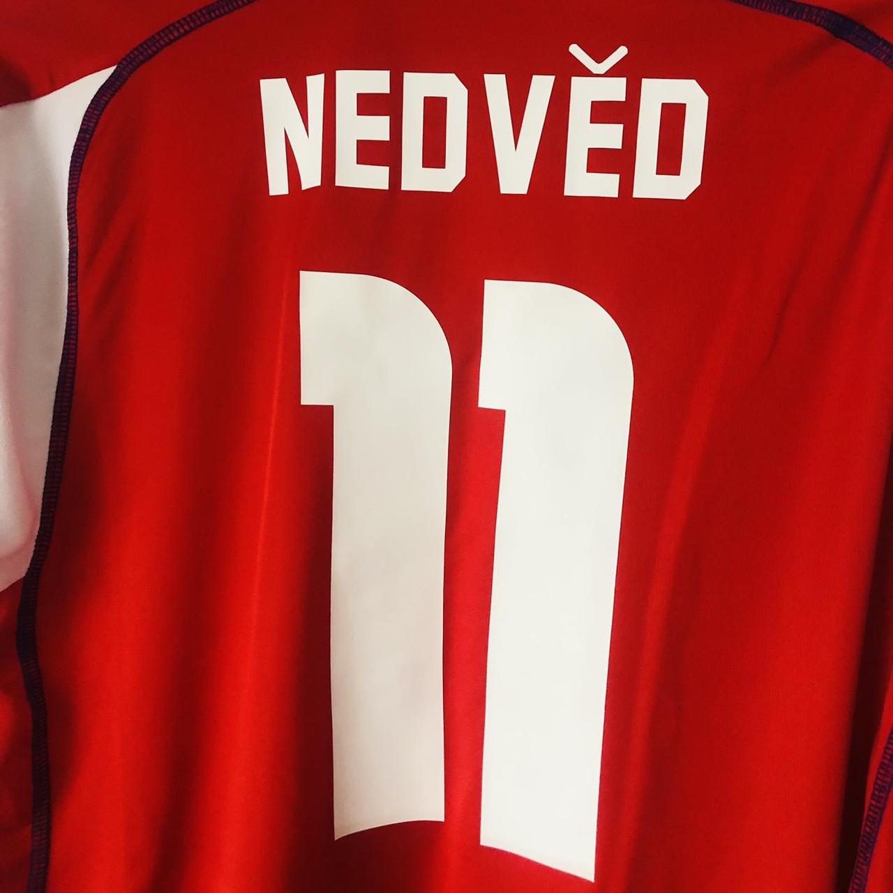 This Czech Republic 2003/2004 Red Home Football Shirt (XXL) features Pavel Nedved number 11 and measures 23" pit to pit, 29" in length, making it more suitable as an XL. It is manufactured by Puma and is in excellent condition with minimal wear to the Czech Republic badge.