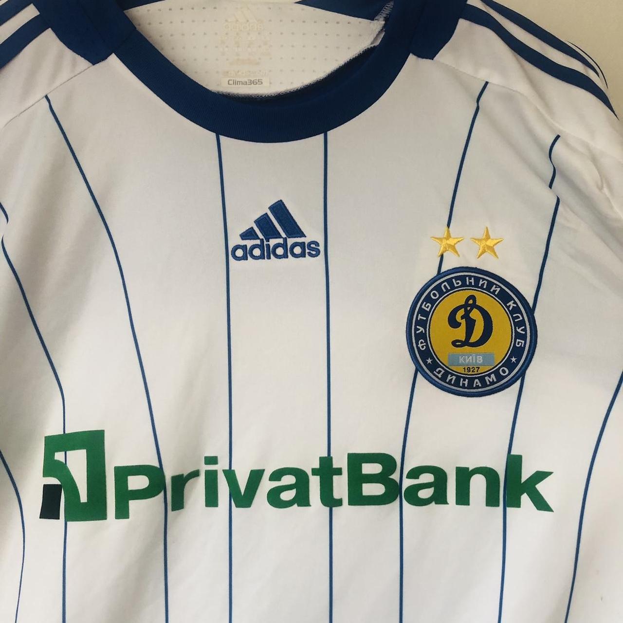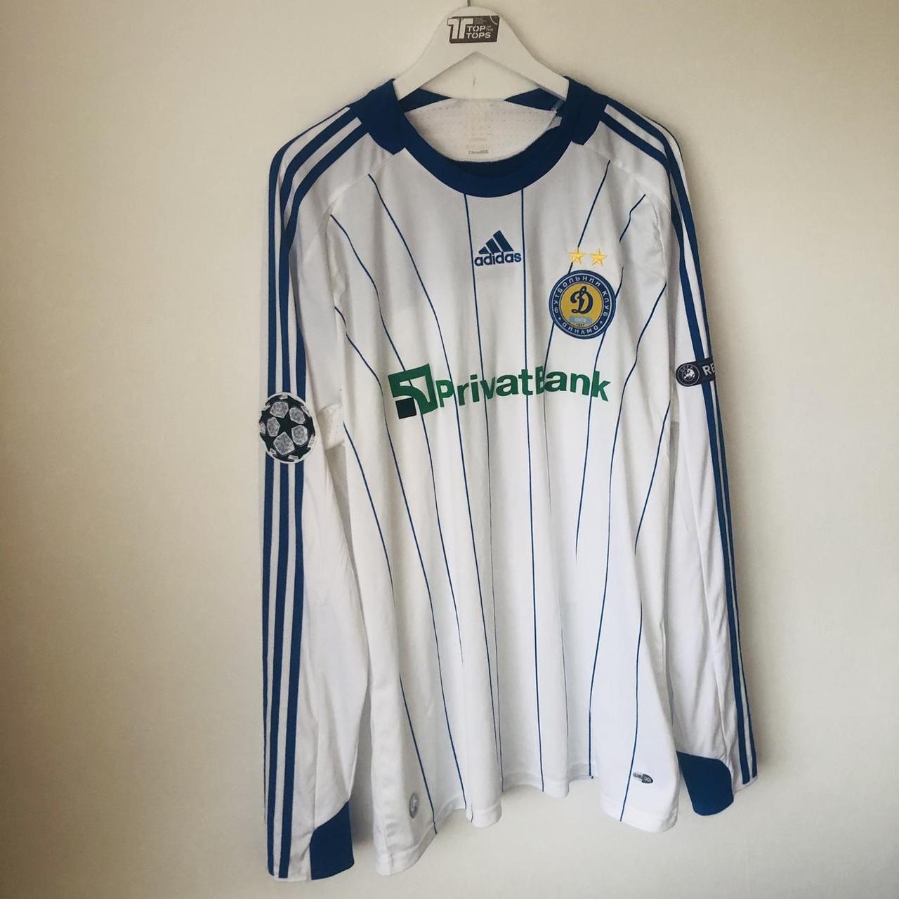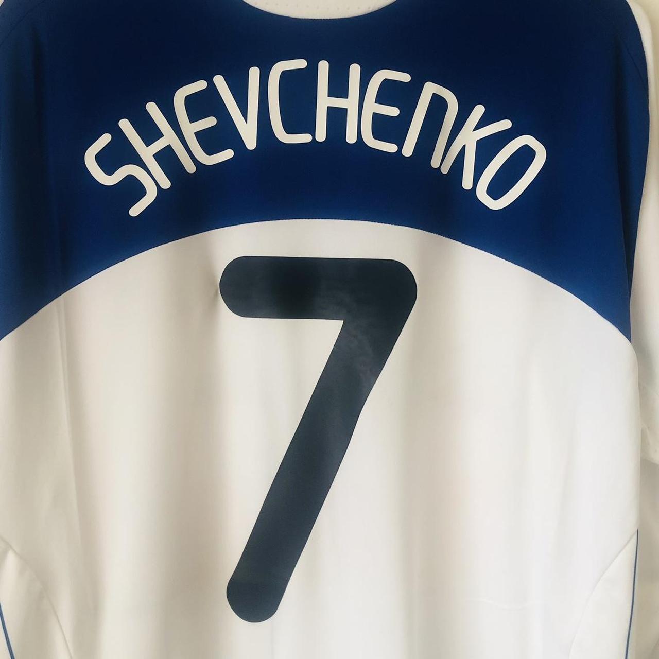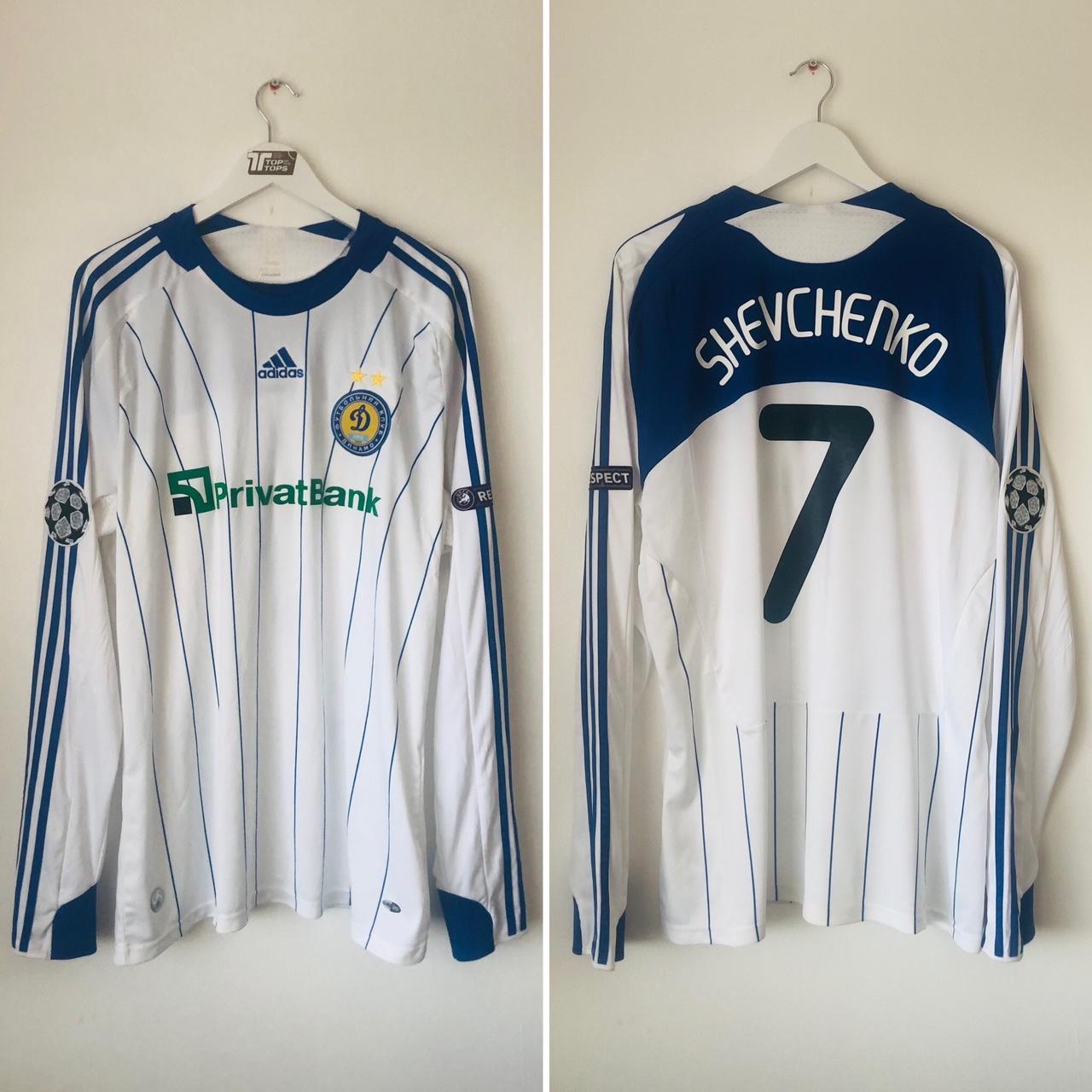 Authentic Dynamo Kiev 2009/2010 Home Football Shirt (XL) with Genuine Felt Sponsor & Player Name and Number. Rare Long Sleeves Version with Champions League and Respect Arm Patches. Official Andrey Shevchenko 7 on the back, same as worn by #Shevchenko for Dynamo during this season. Size adult XL, measures chest pit to pit 23.5" and length 30". Unreadable size label and a couple of barely noticeable marks, otherwise in very good condition. Comes with authenticity code 308534.