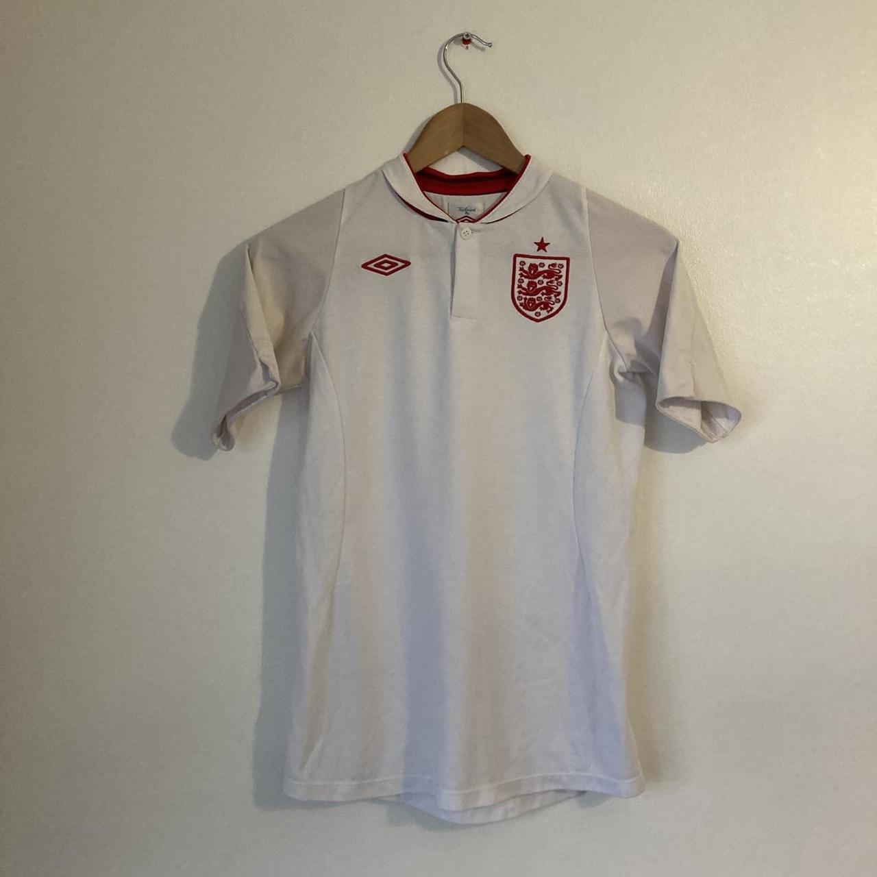 This England home football shirt for Euro 2012 is a vintage and original classic. It is listed for sale in size XL for youths and measures 16.5" from pit to pit and 25" in length. In excellent condition.