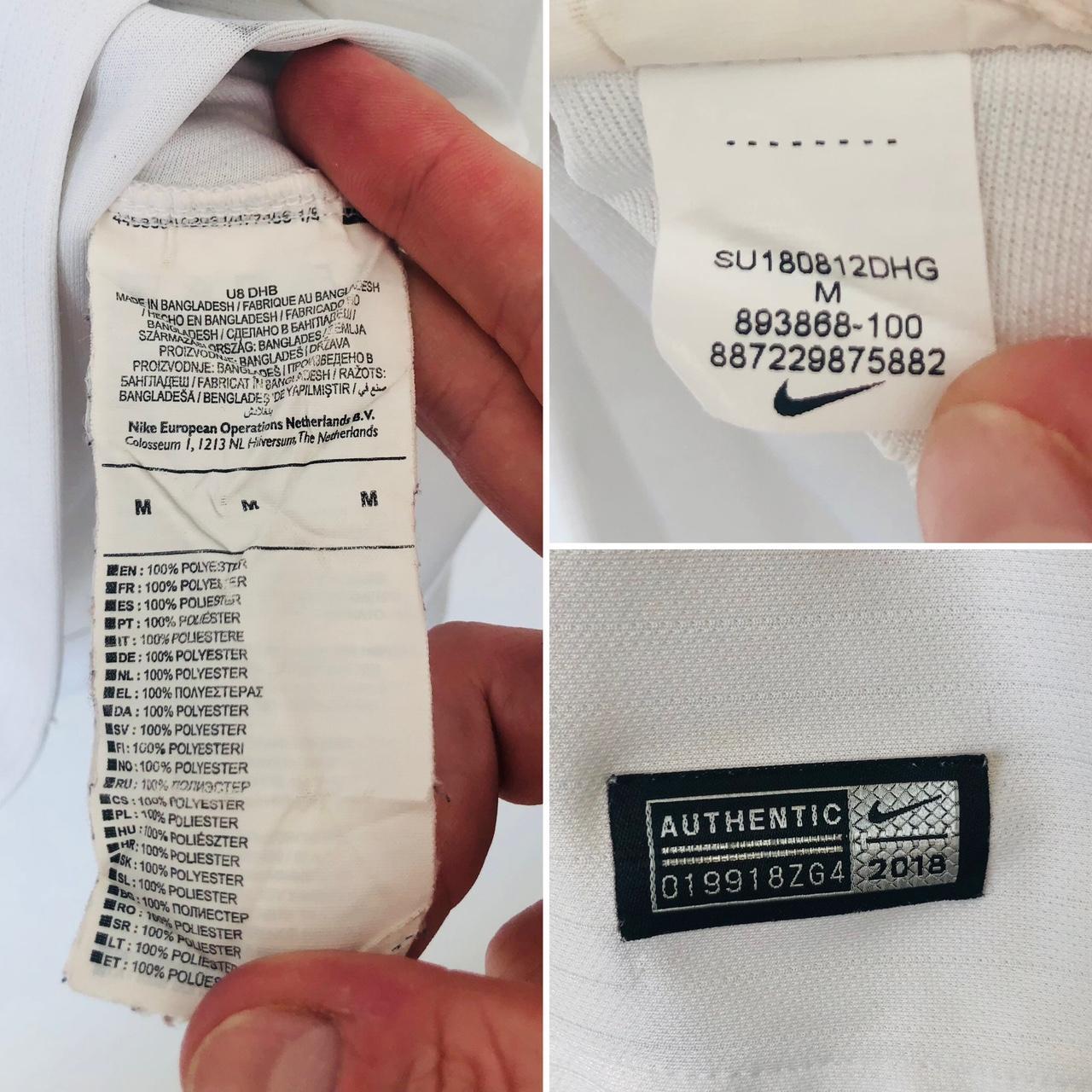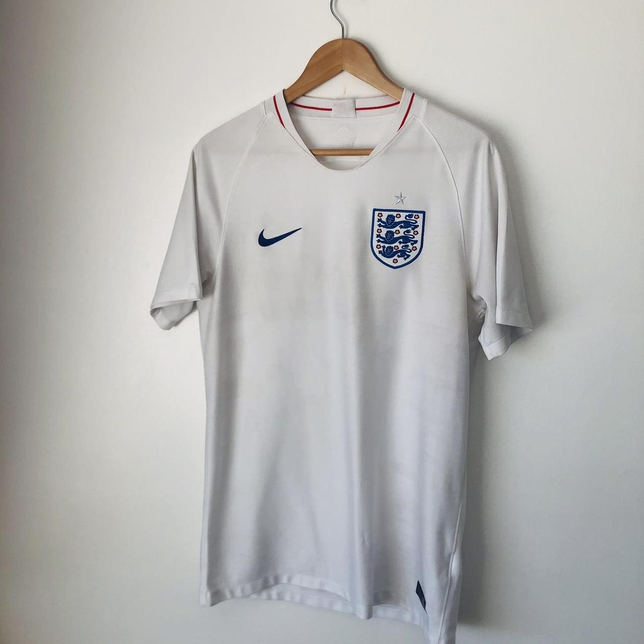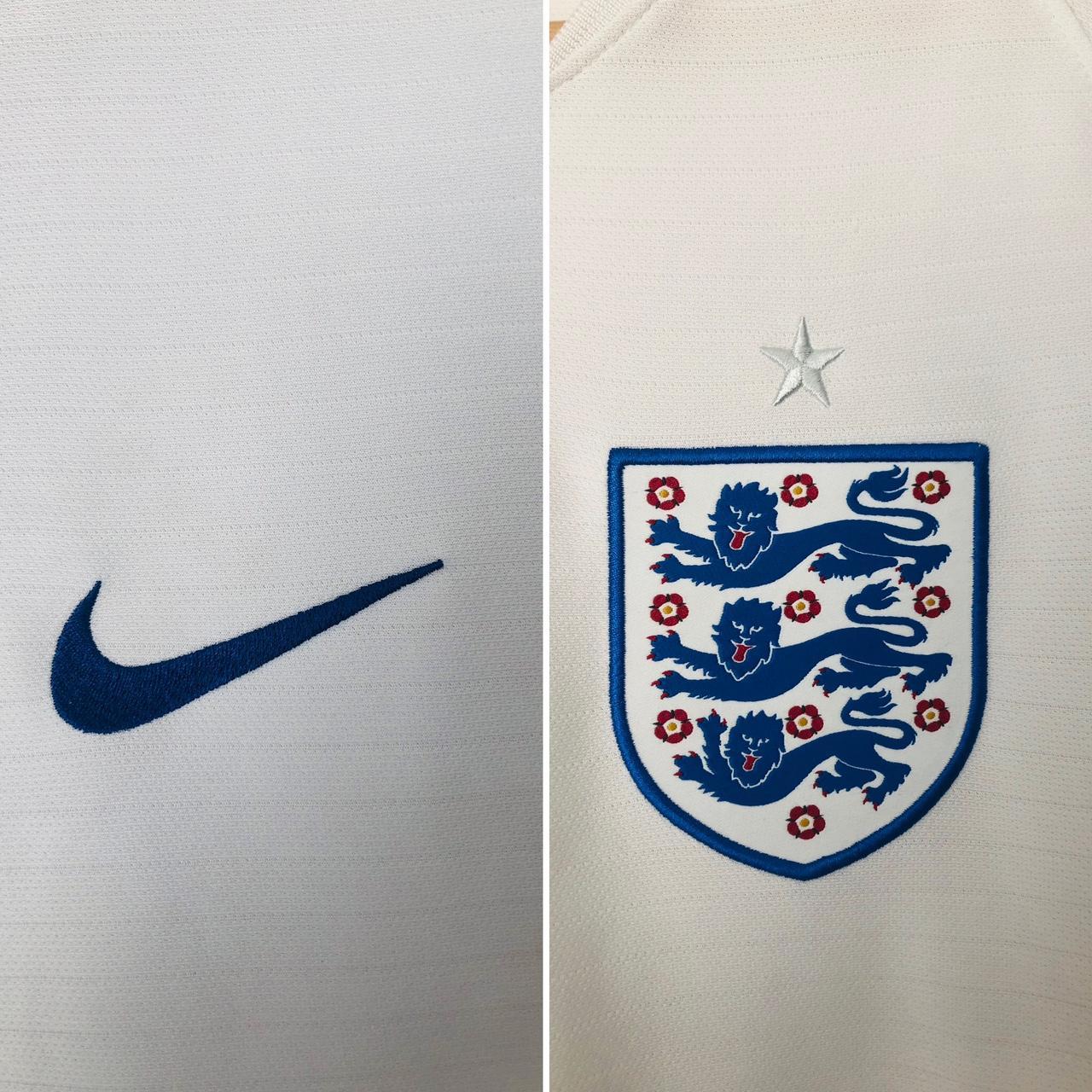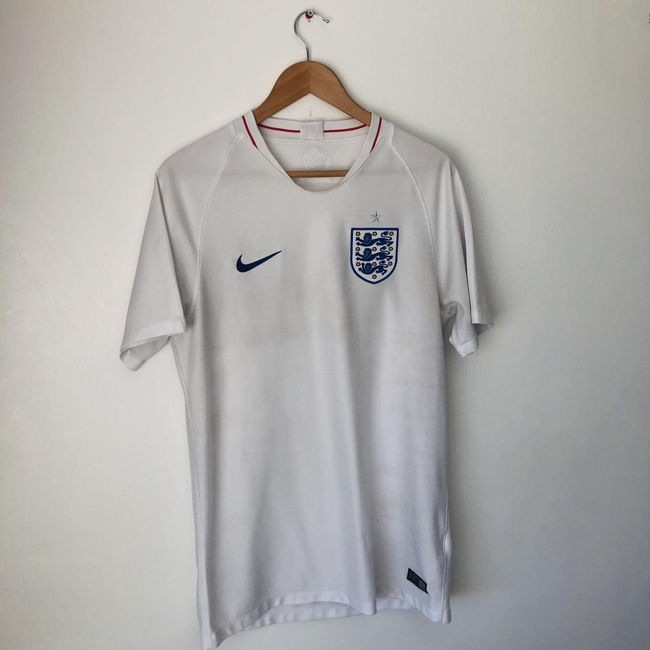 Experience the true authenticity and tradition of England football with the classic 2018 World Cup home shirt in adult medium size. Featuring a chest measurement of 20" and length of 28.5", this shirt may have some minor marks, but it remains in good condition. Don't miss your chance to own this original piece, marked with the authenticity code 893868 100.