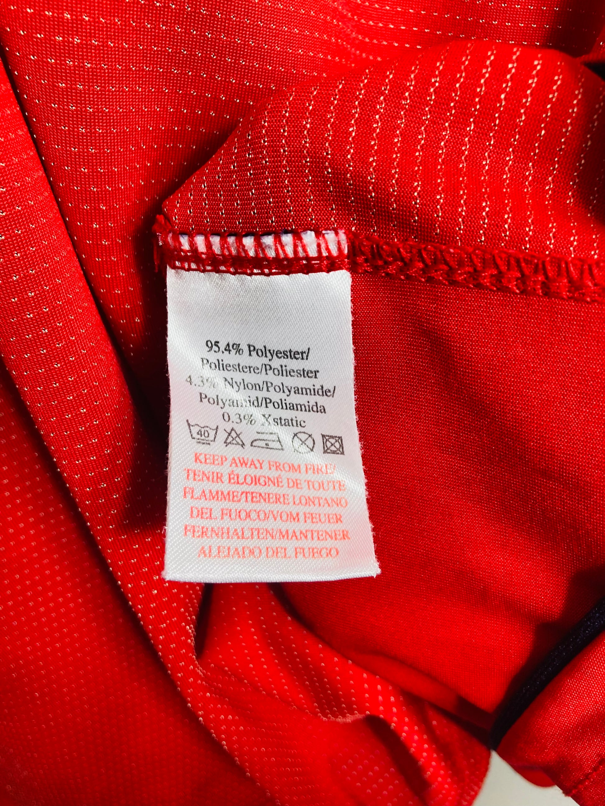 This shirt has seen some wear but is still in good condition. There may be some minor flaws such as light fading, small pulls, or faint stains, but these do not detract from the overall appearance or wearability of the shirt. A great choice for those looking to own a piece of football history at an accessible price.