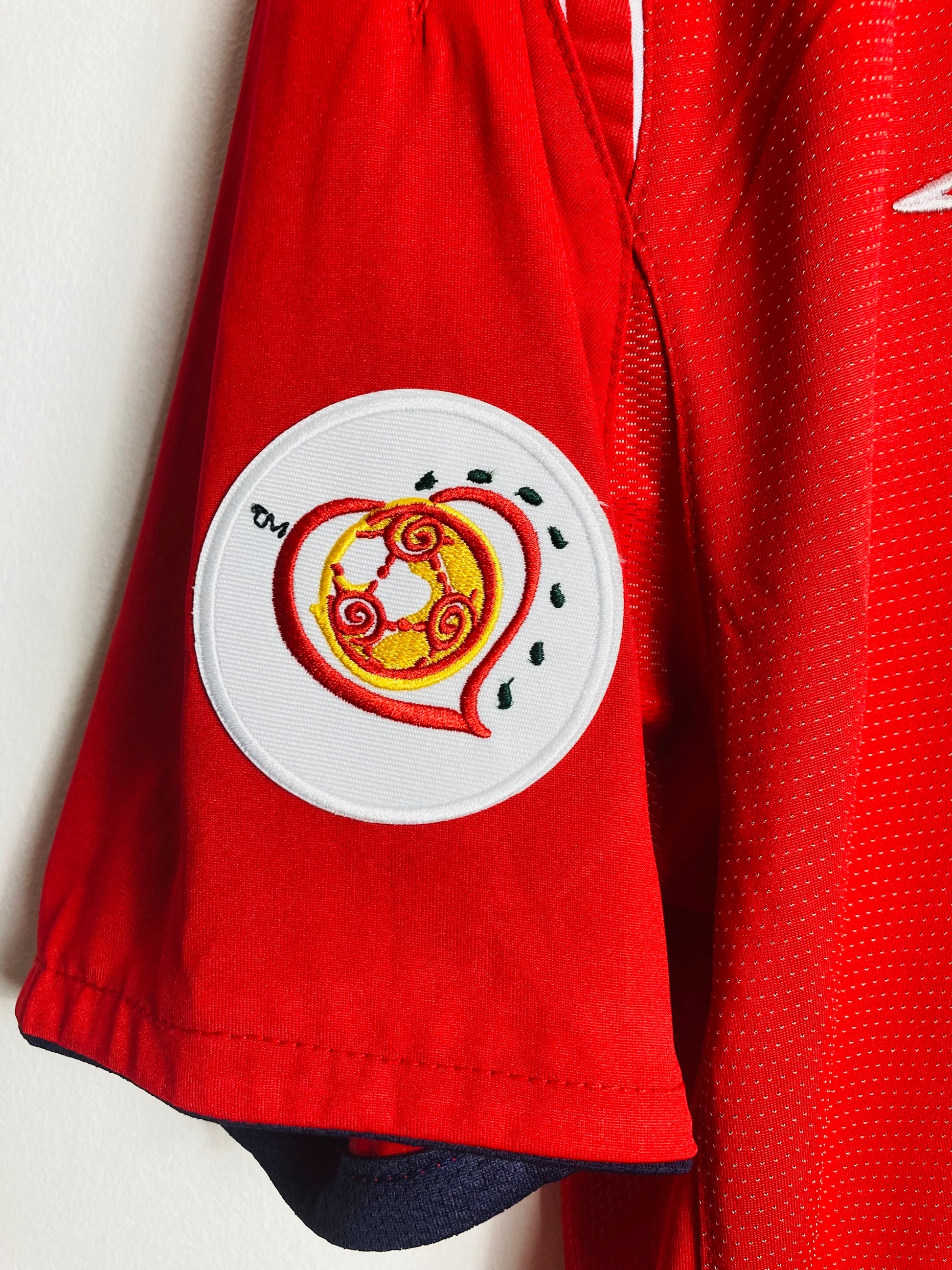 This shirt has seen some wear but is still in good condition. There may be some minor flaws such as light fading, small pulls, or faint stains, but these do not detract from the overall appearance or wearability of the shirt. A great choice for those looking to own a piece of football history at an accessible price.