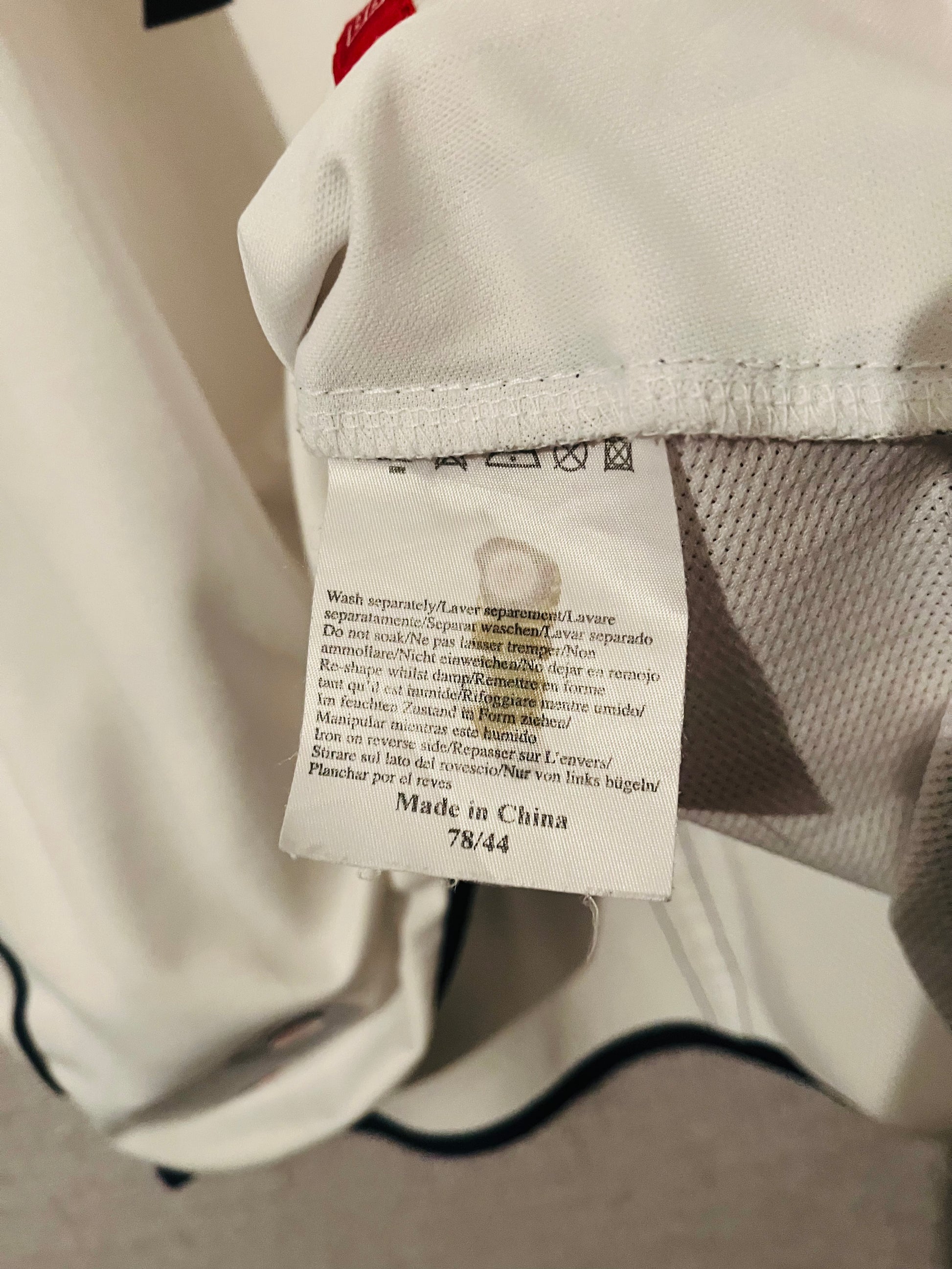 This shirt has seen some wear but is still in good condition. There may be some minor flaws such as light fading, small pulls, or faint stains, but these do not detract from the overall appearance or wearability of the shirt. A great choice for those looking to own a piece of football history at an accessible price.
