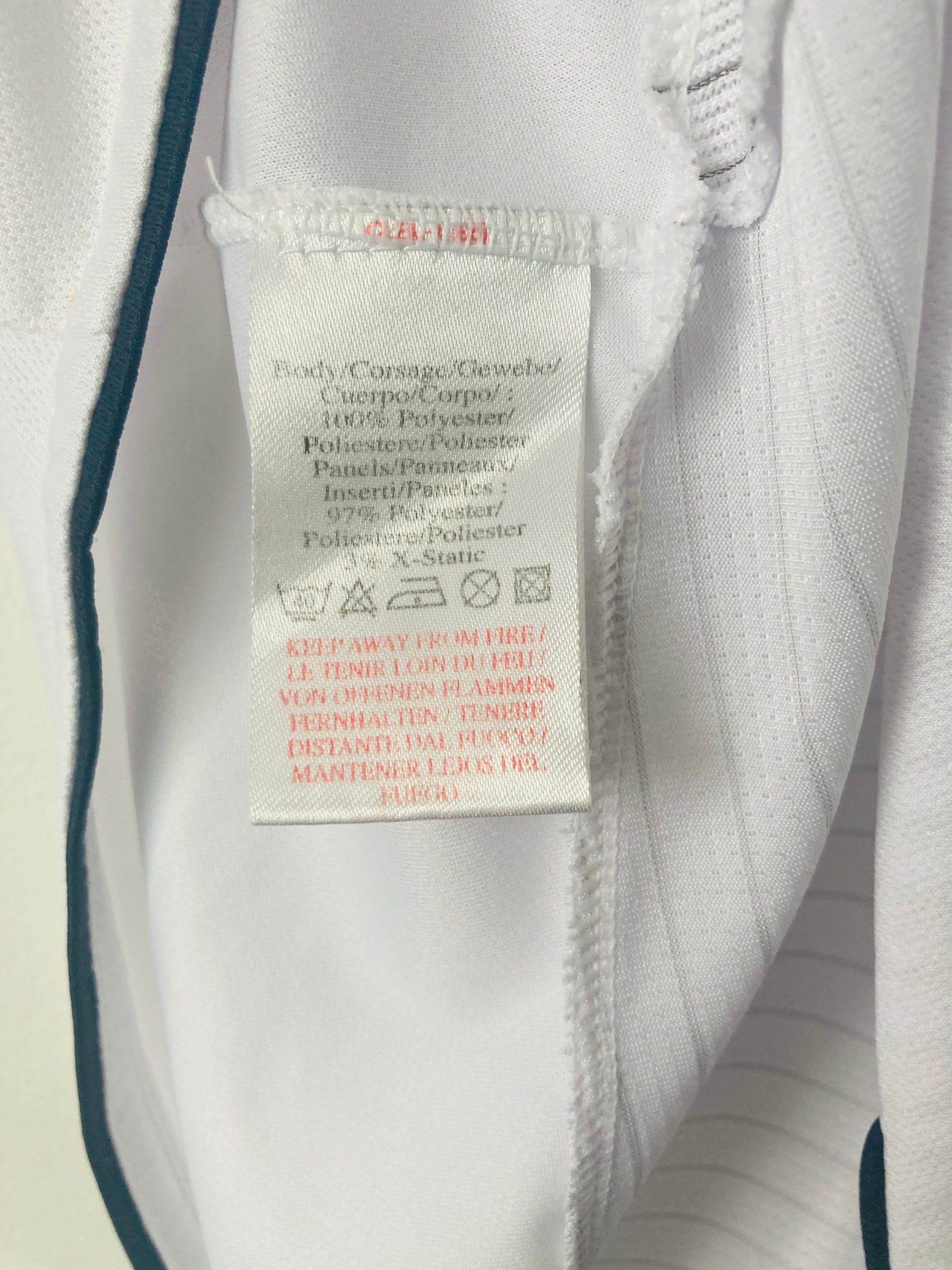 This shirt has seen some wear but is still in good condition. There may be some minor flaws such as light fading, small pulls, or faint stains, but these do not detract from the overall appearance or wearability of the shirt. A great choice for those looking to own a piece of football history at an accessible price.
