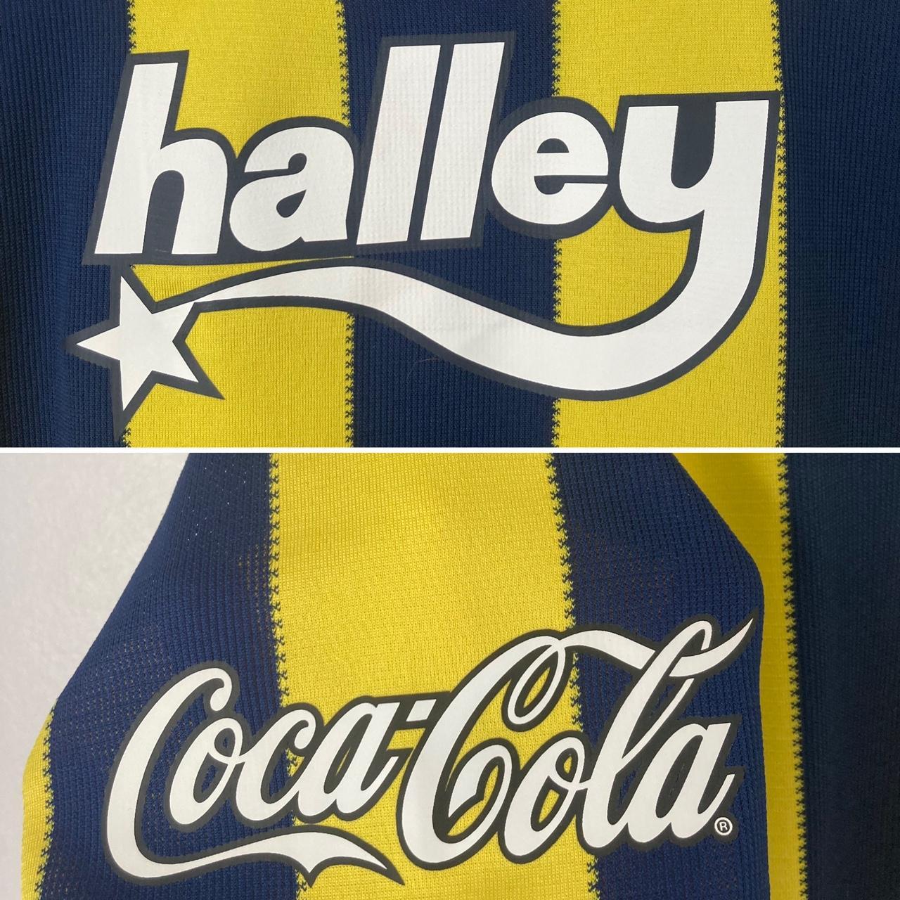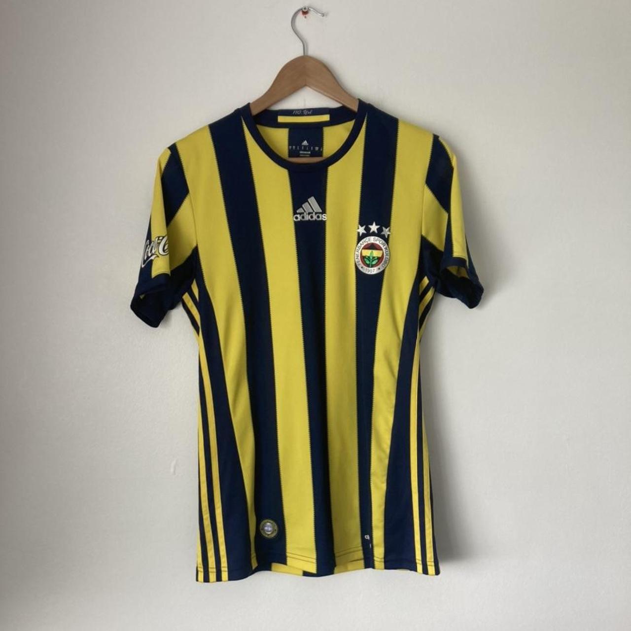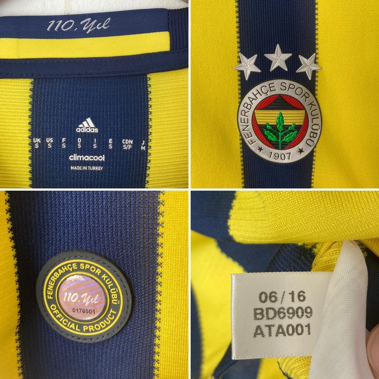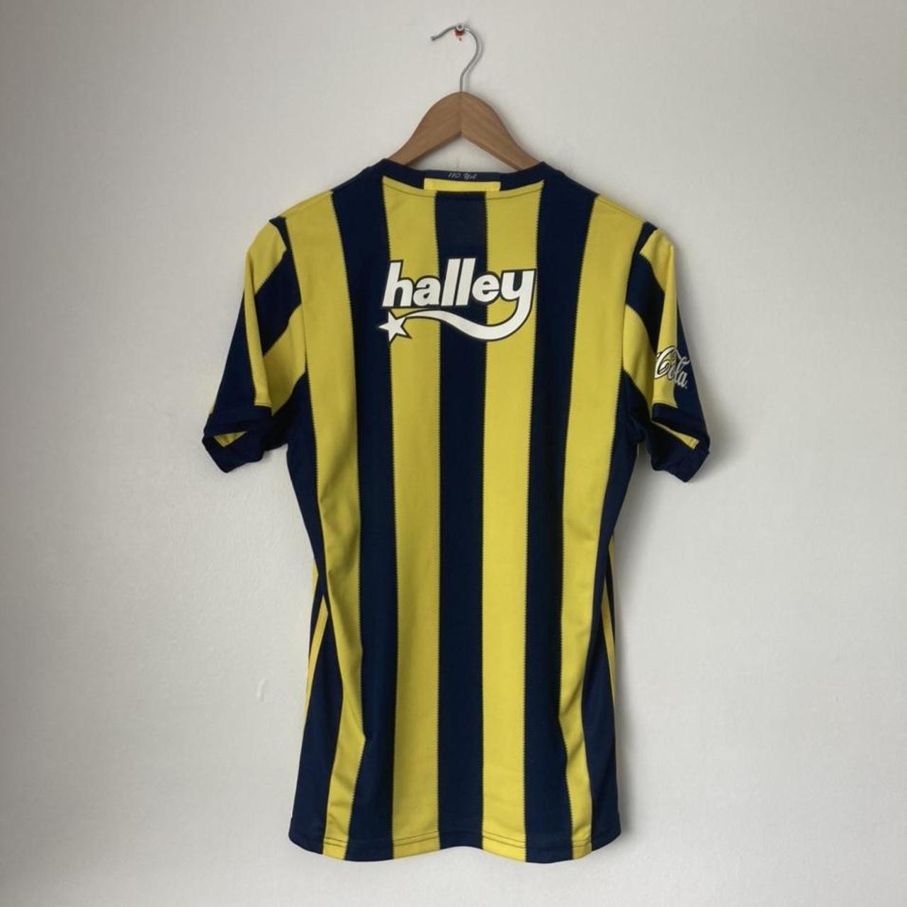 FOR SALE Experience the authenticity of the official Fenerbahce 2016/2017 home football shirt, size adult small. The label indicates a chest pit to pit measurement of 18" and a length of 27". Immaculate condition, brand new without tags. Features Coca Cola and Halley sponsors, as well as a commemorative collar and bottom hem logo in celebration of 110 years.