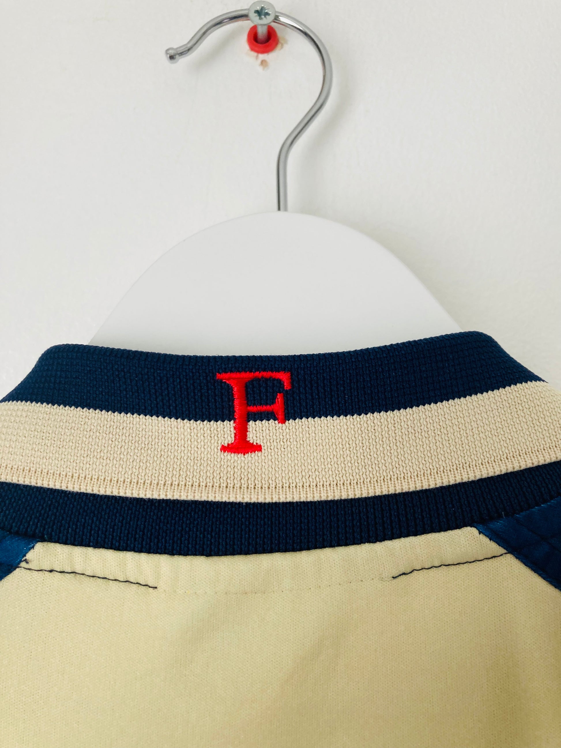 This shirt has seen some wear but is still in good condition. There may be some minor flaws such as light fading, small pulls, or faint stains, but these do not detract from the overall appearance or wearability of the shirt. A great choice for those looking to own a piece of football history at an accessible price.