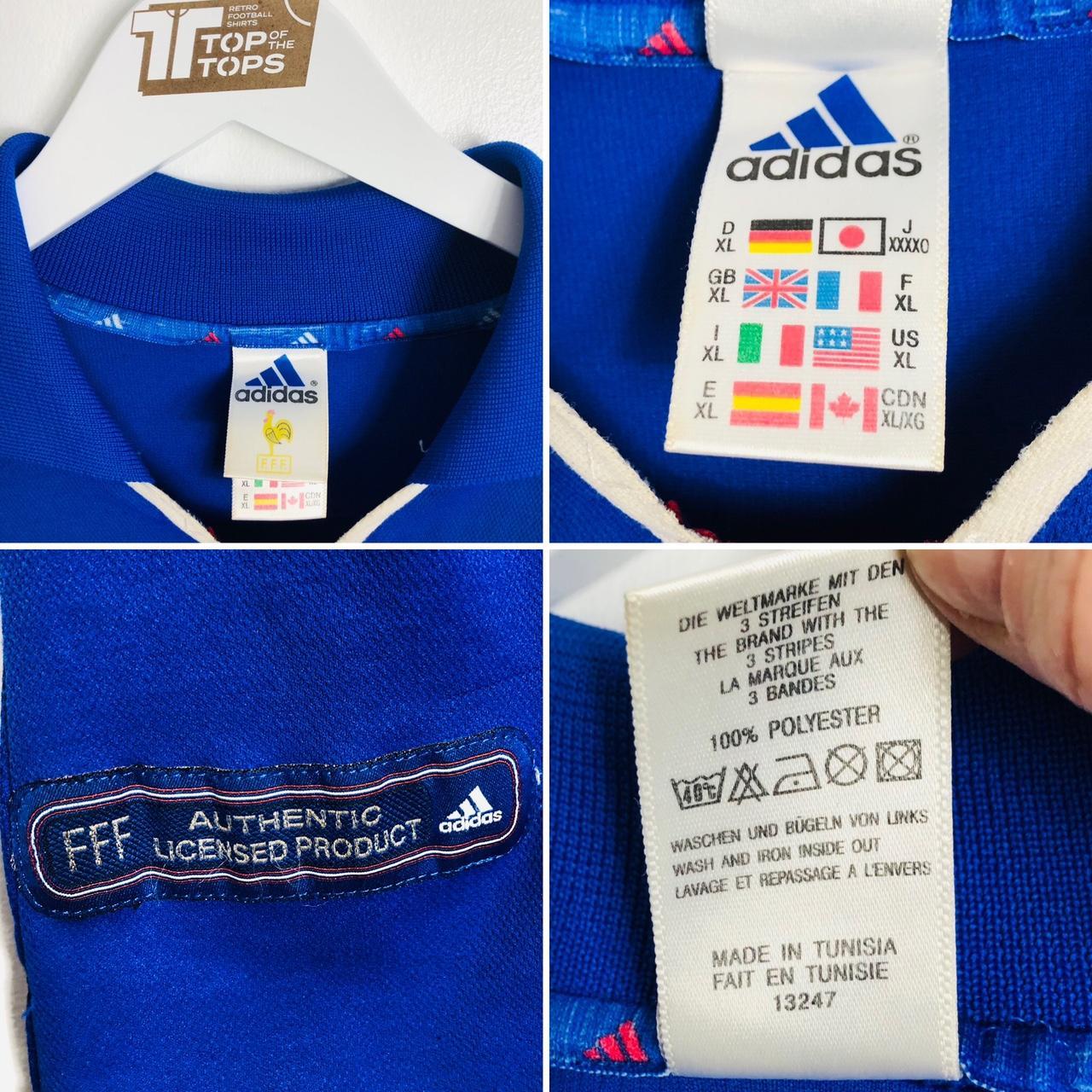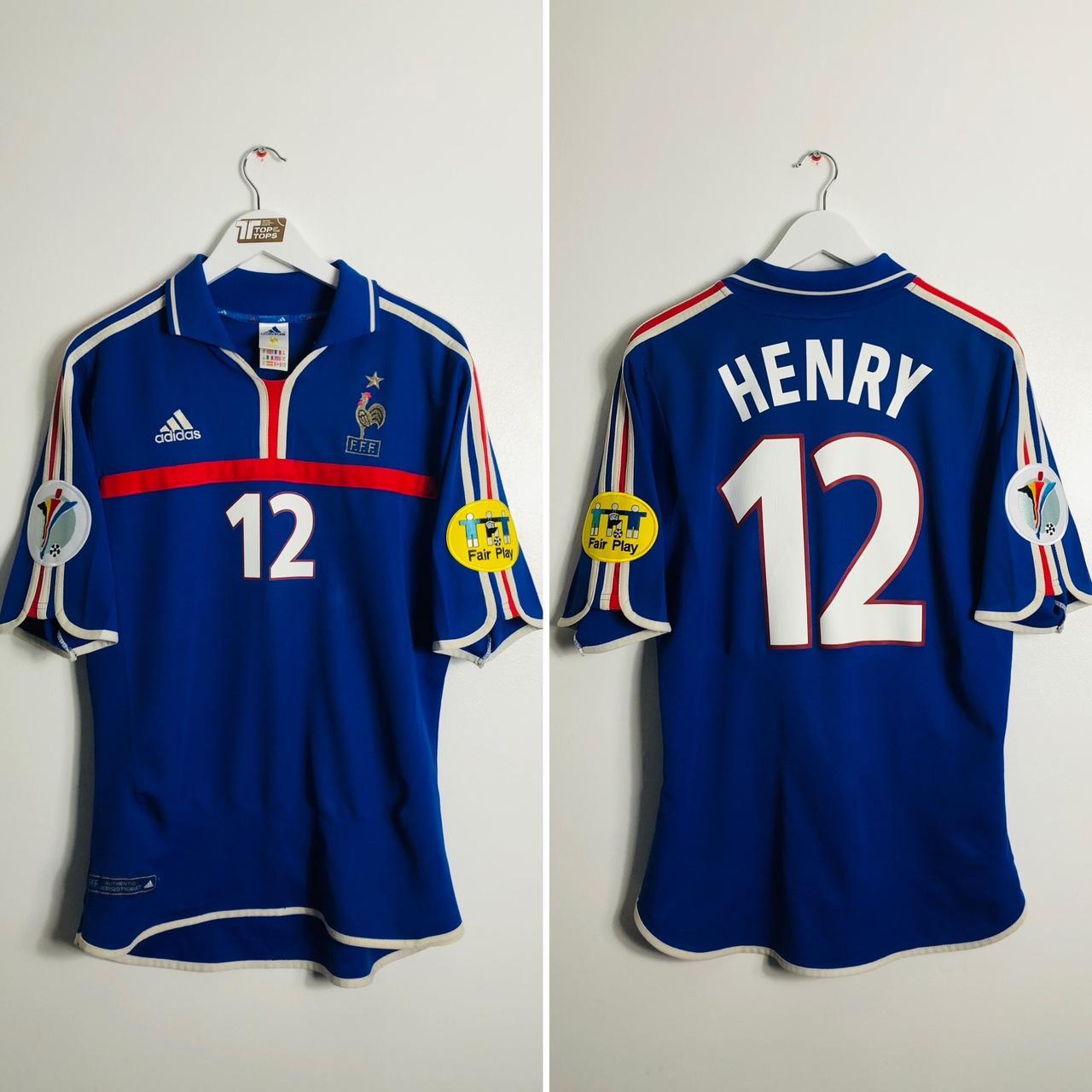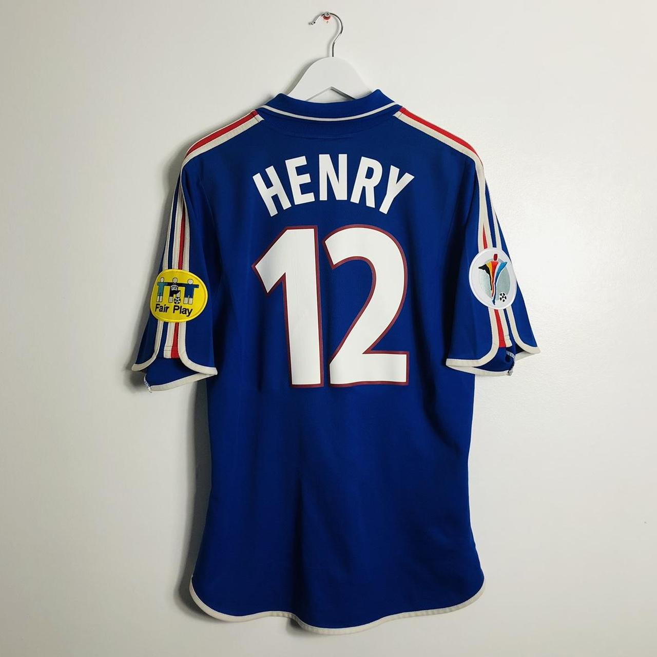 Up for sale is the France 2000 Blue Home Football Shirt (XL) featuring Thierry Henry 12, perfect for the Euro 2000 season. This size is Adult XL and measures at Chest pit to pit 22" and Length 28" with a 2 inch overhang at the back. It may fit better as an adult large due to running small. This Adidas shirt is in good condition for its age, with only a minor mark on the back near the bottom and some bobbles and small pulls. The product code for this shirt is 13247 France.