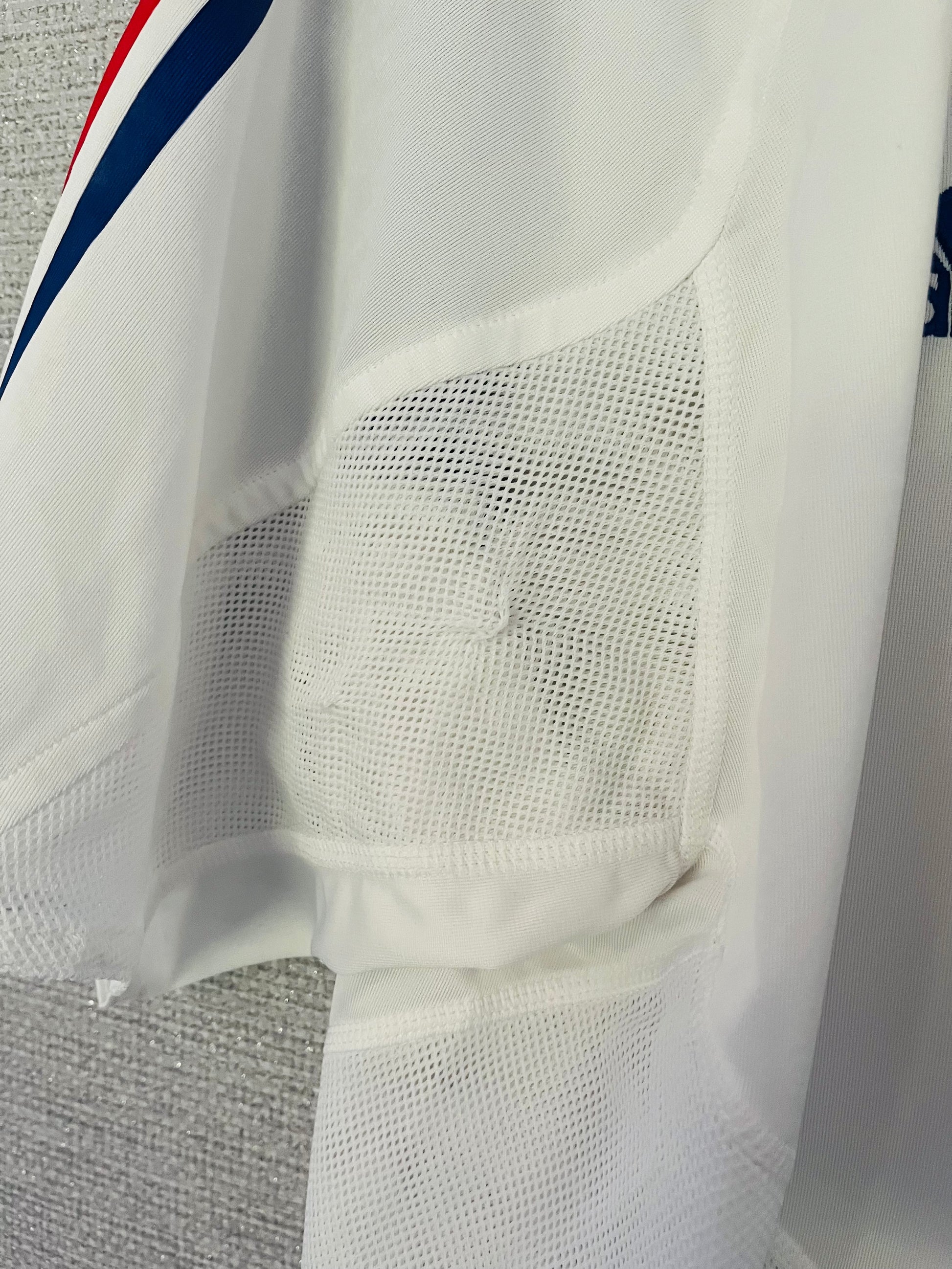 This shirt has seen some wear but is still in good condition. There may be some minor flaws such as light fading, small pulls, or faint stains, but these do not detract from the overall appearance or wearability of the shirt. A great choice for those looking to own a piece of football history at an accessible price.