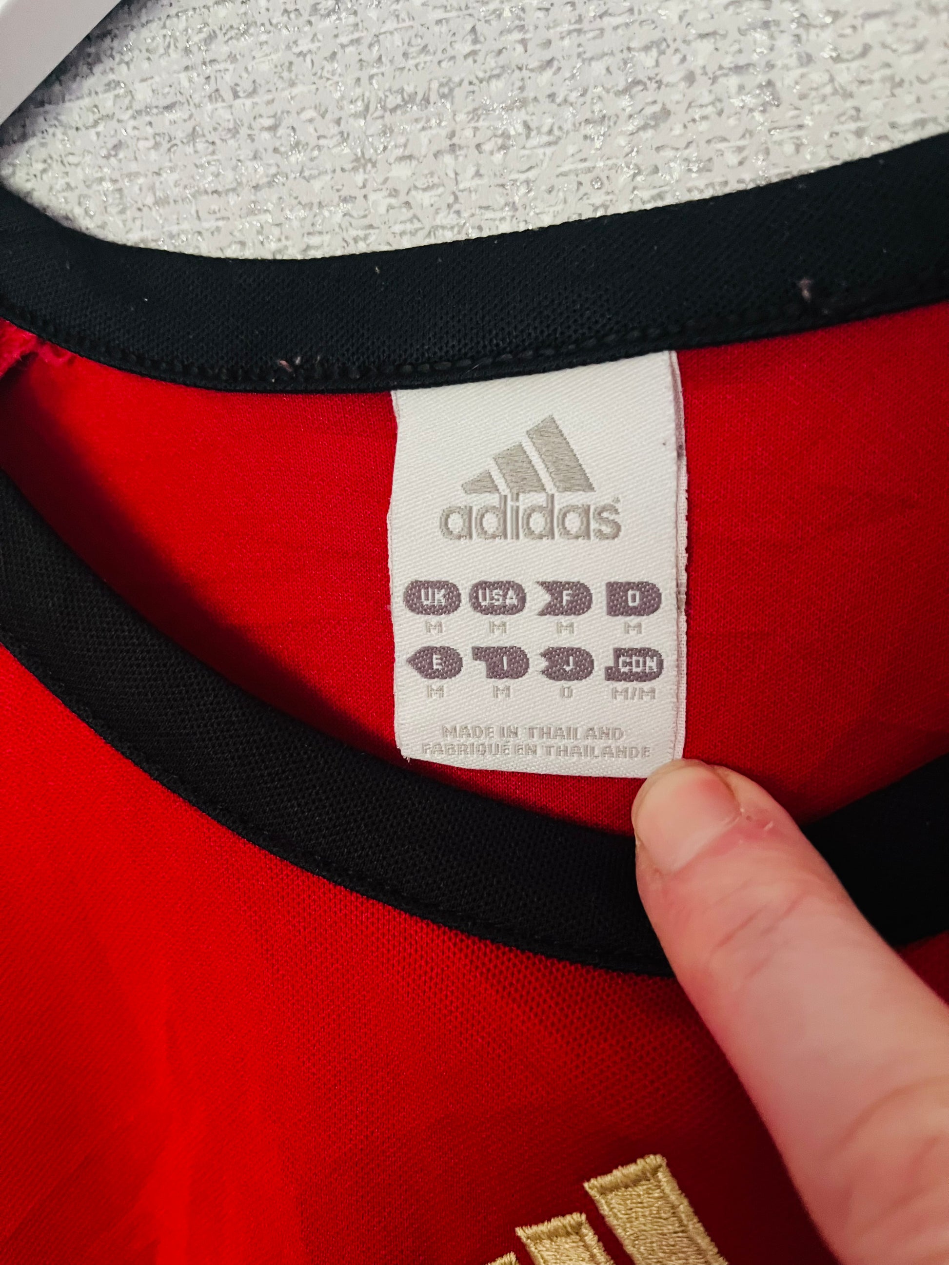 This shirt has seen some wear but is still in good condition. There may be some minor flaws such as light fading, small pulls, or faint stains, but these do not detract from the overall appearance or wearability of the shirt. A great choice for those looking to own a piece of football history at an accessible price.