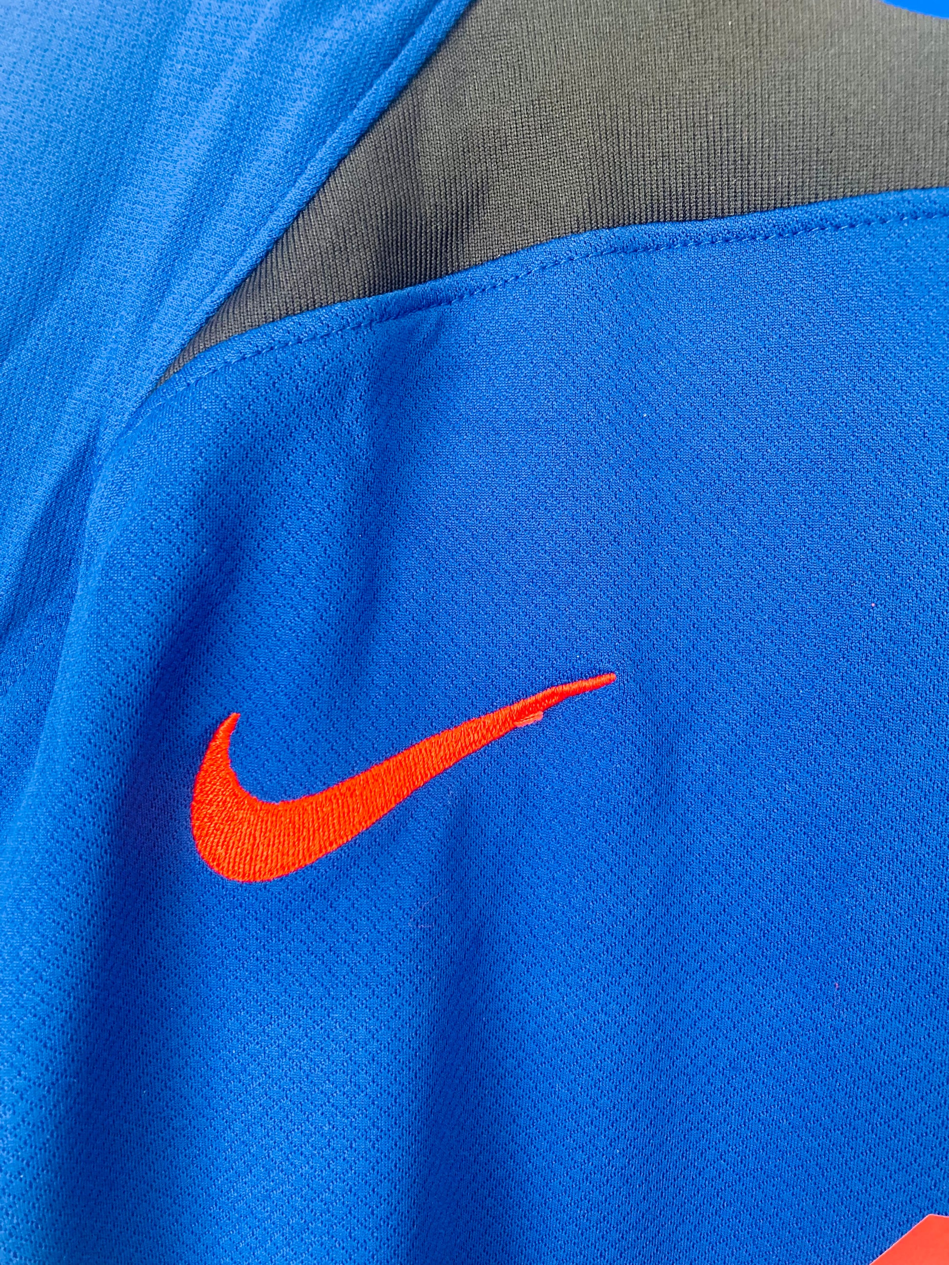 This shirt has seen some wear but is still in good condition. There may be some minor flaws such as light fading, small pulls, or faint stains, but these do not detract from the overall appearance or wearability of the shirt. A great choice for those looking to own a piece of football history at an accessible price.