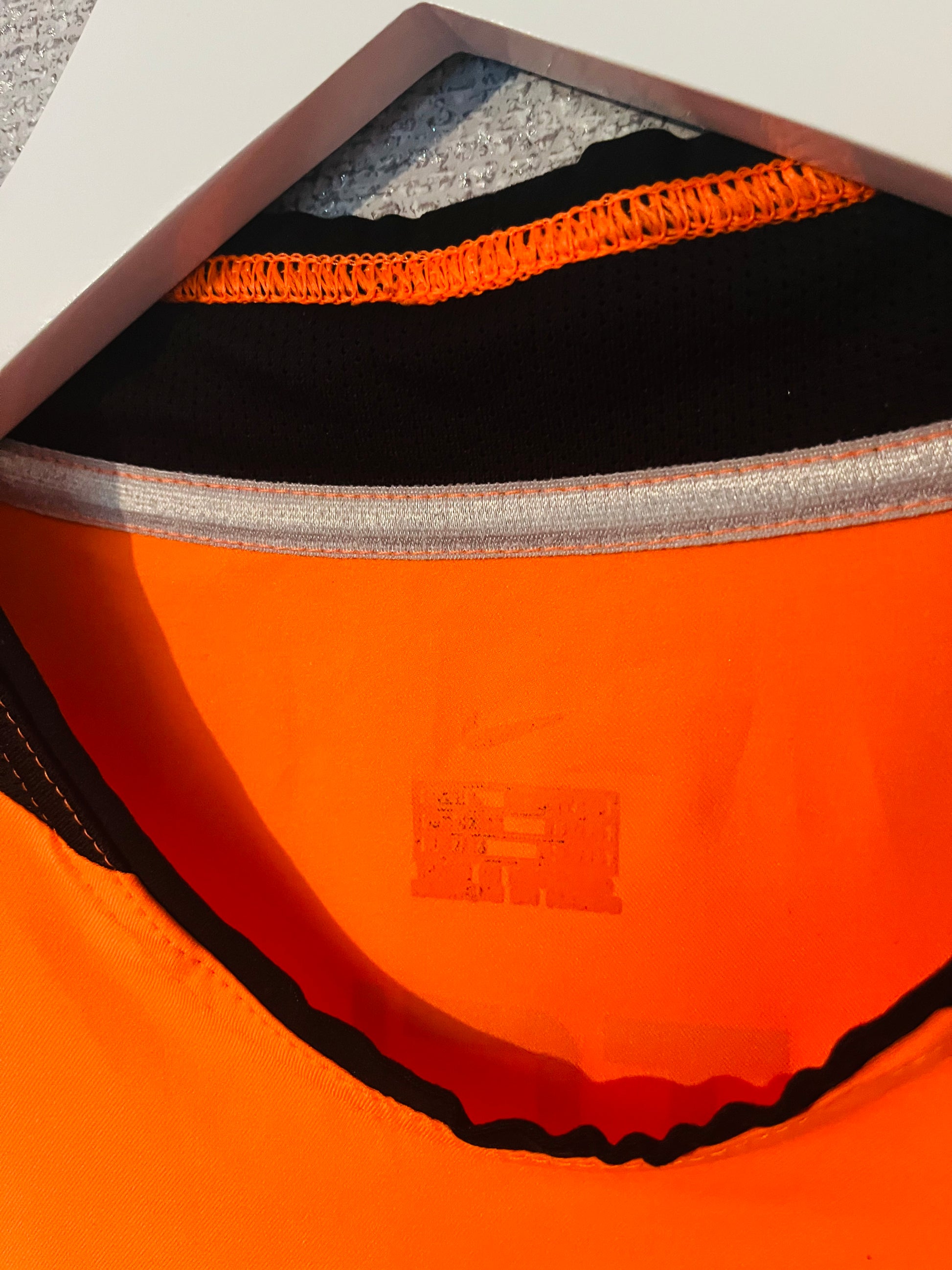 This shirt was worn by a player during an official match. It may show signs of use such as slight wear, grass stains, or minor fabric pulls, which only add to its authenticity and collectible value. These shirts are often one-of-a-kind and a prized piece of football history.