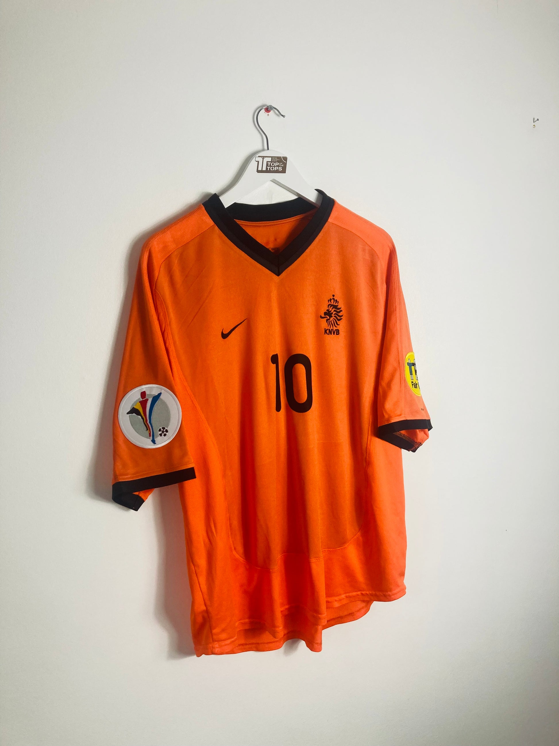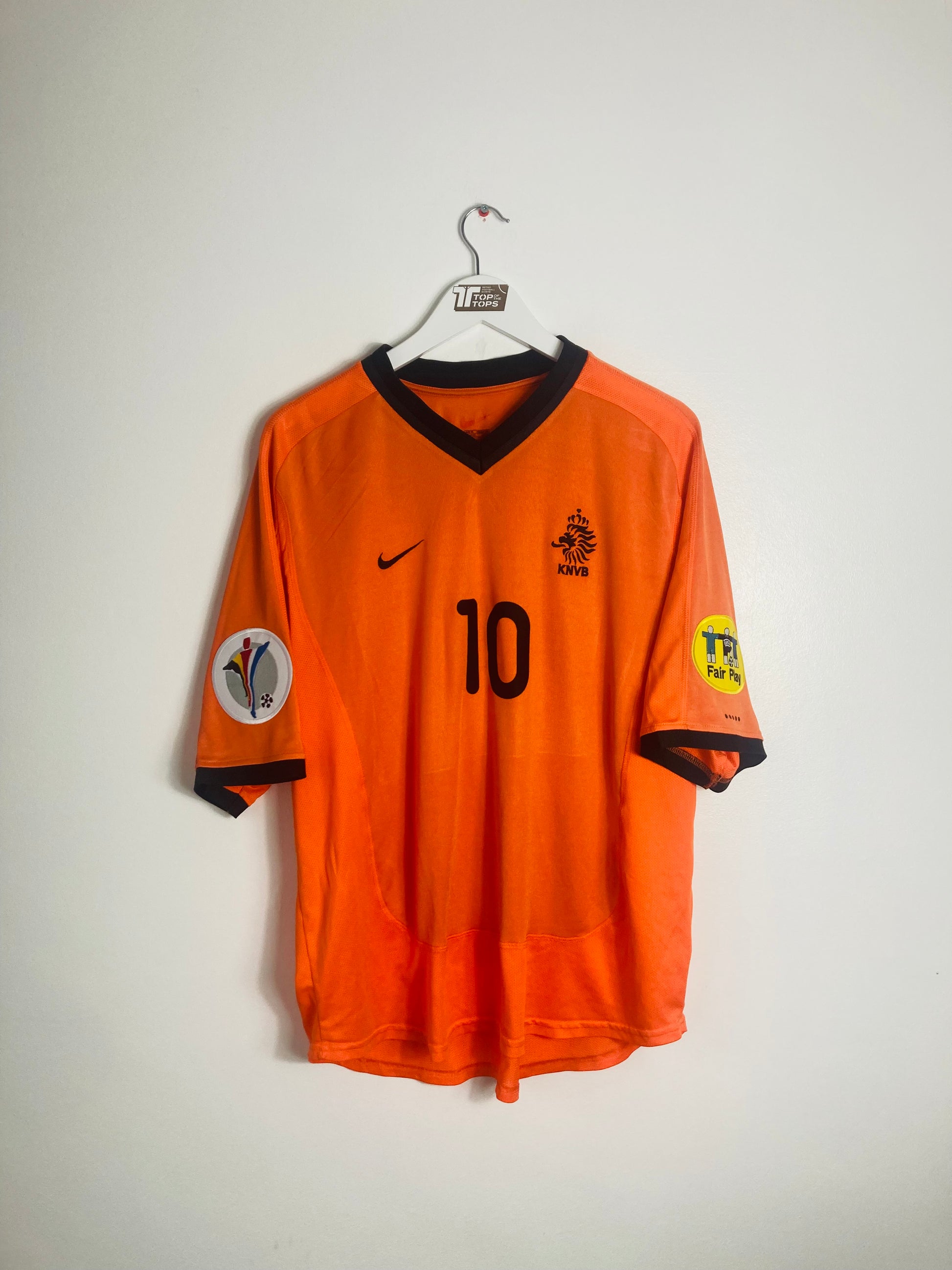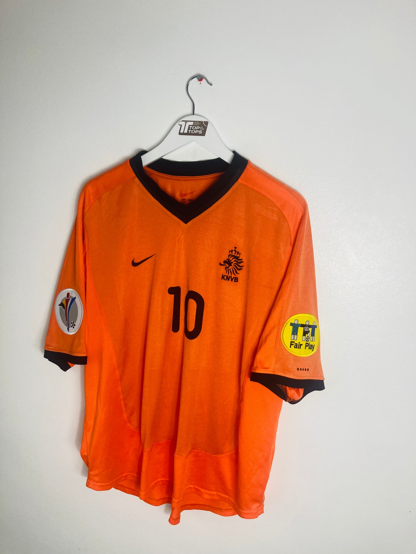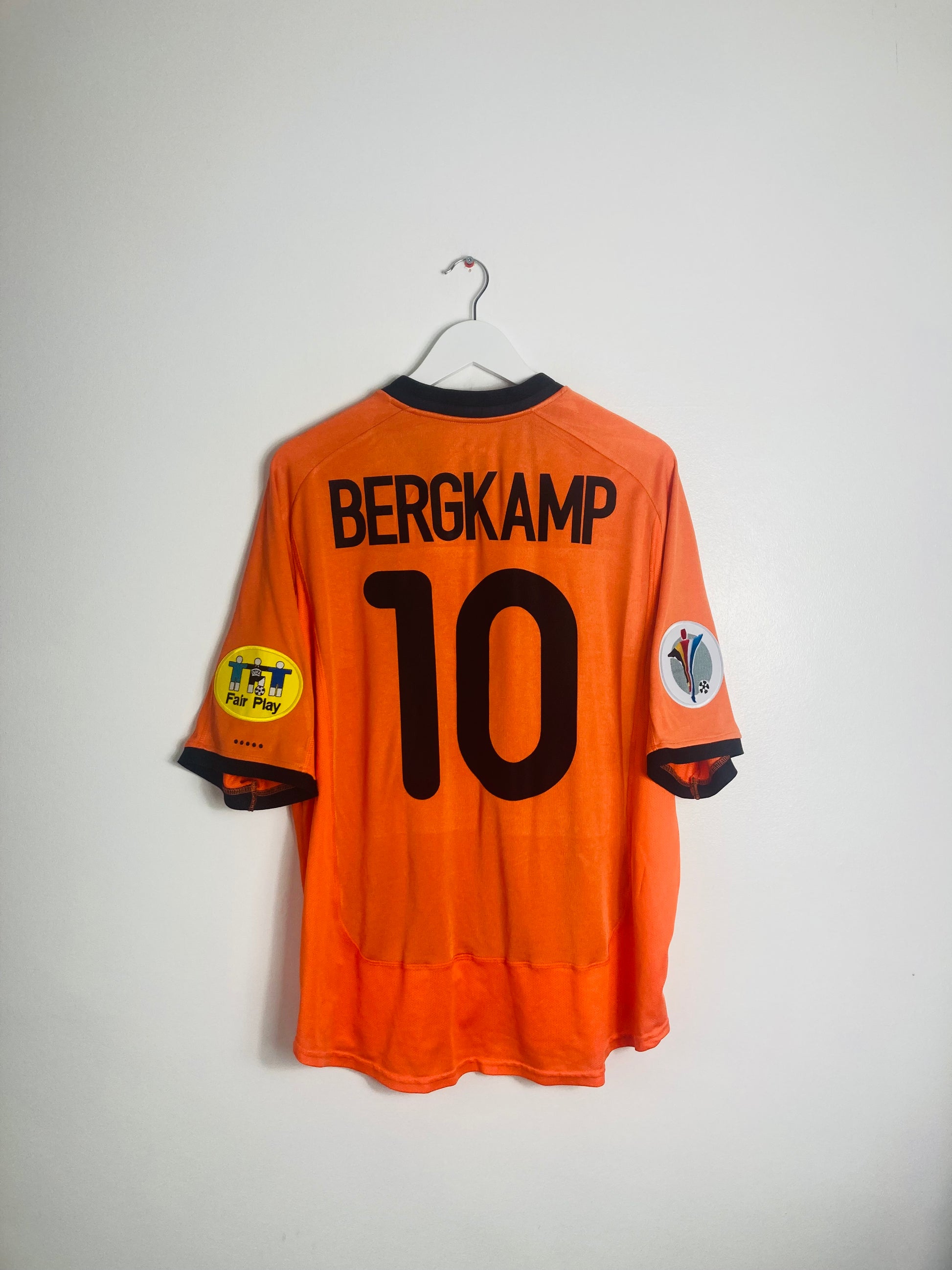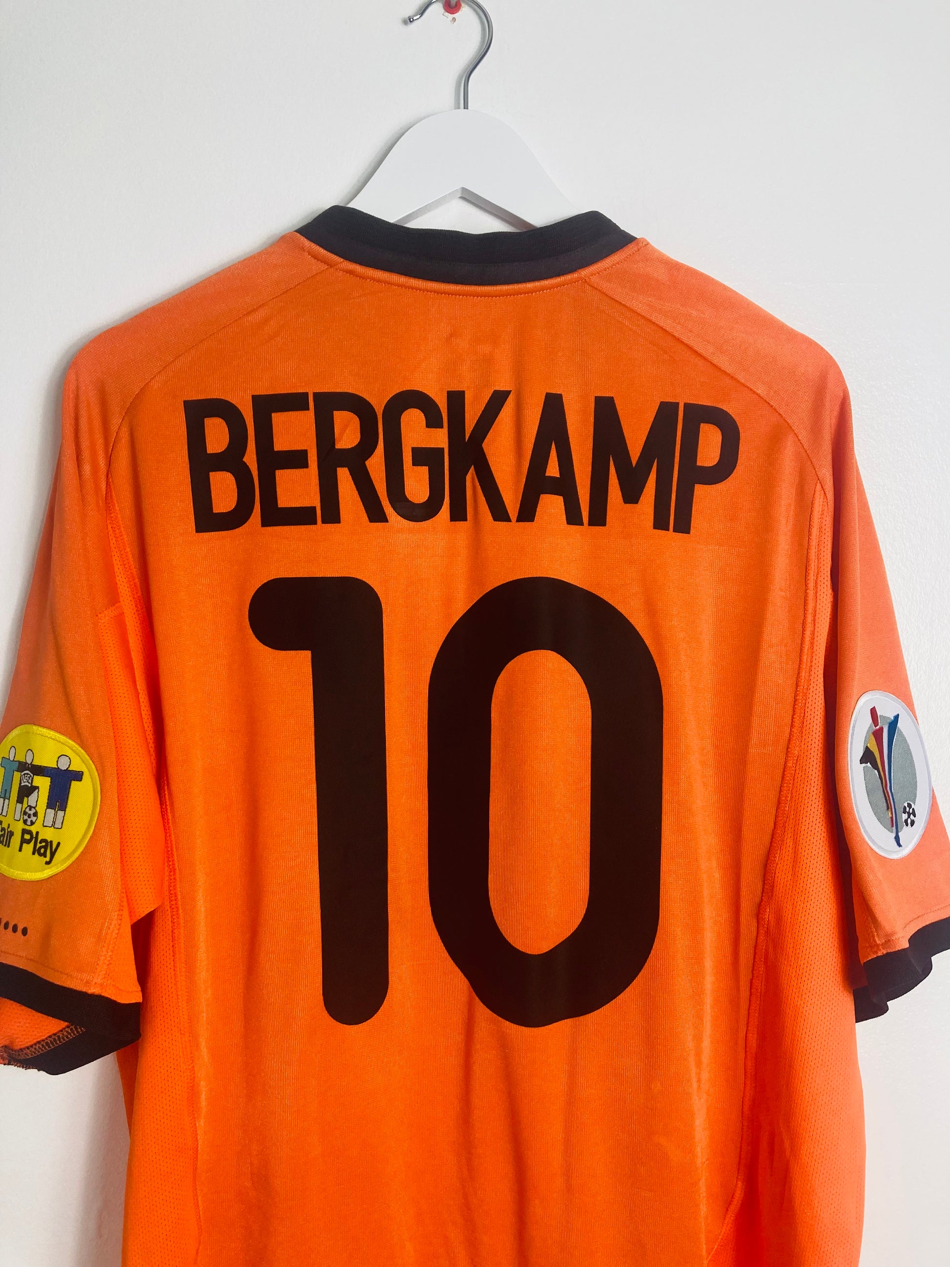 Official Dennis Bergkamp 10 on the front and back & Euro 2000 logo & fair play arm patches, as worn by Bergkamp during this Euros tournament for the Dutch.