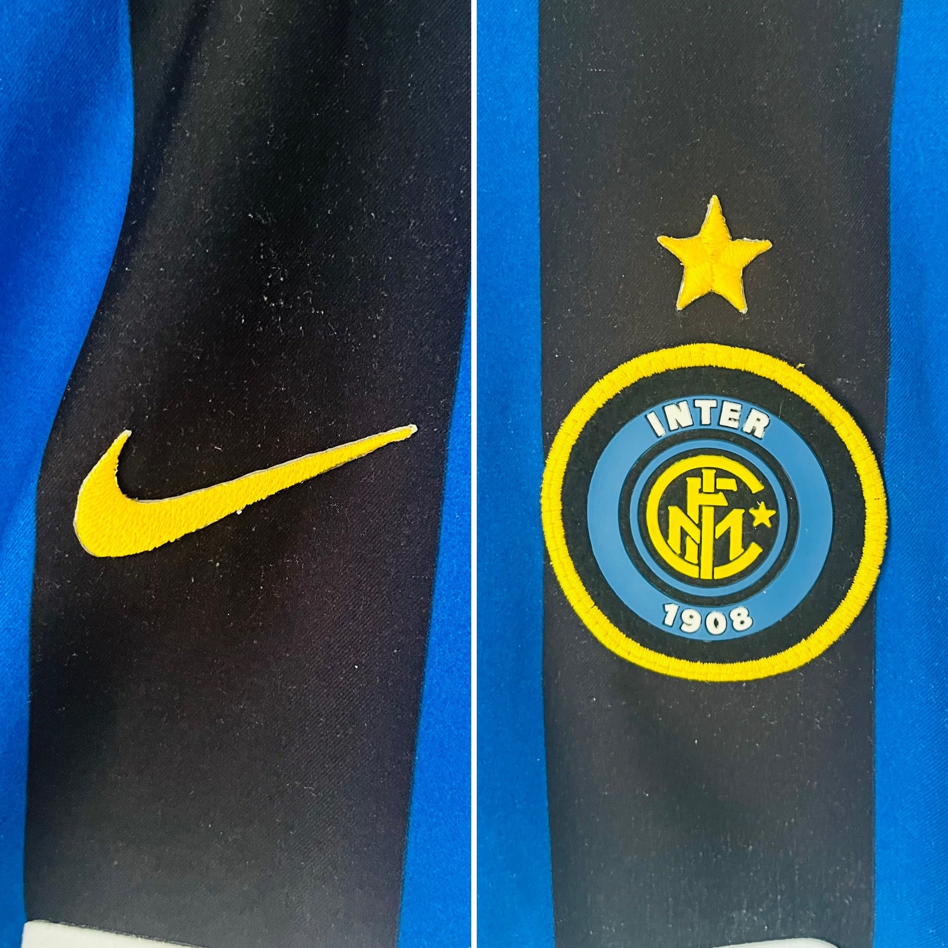 This shirt has seen some wear but is still in good condition. There may be some minor flaws such as light fading, small pulls, or faint stains, but these do not detract from the overall appearance or wearability of the shirt. A great choice for those looking to own a piece of football history at an accessible price.
