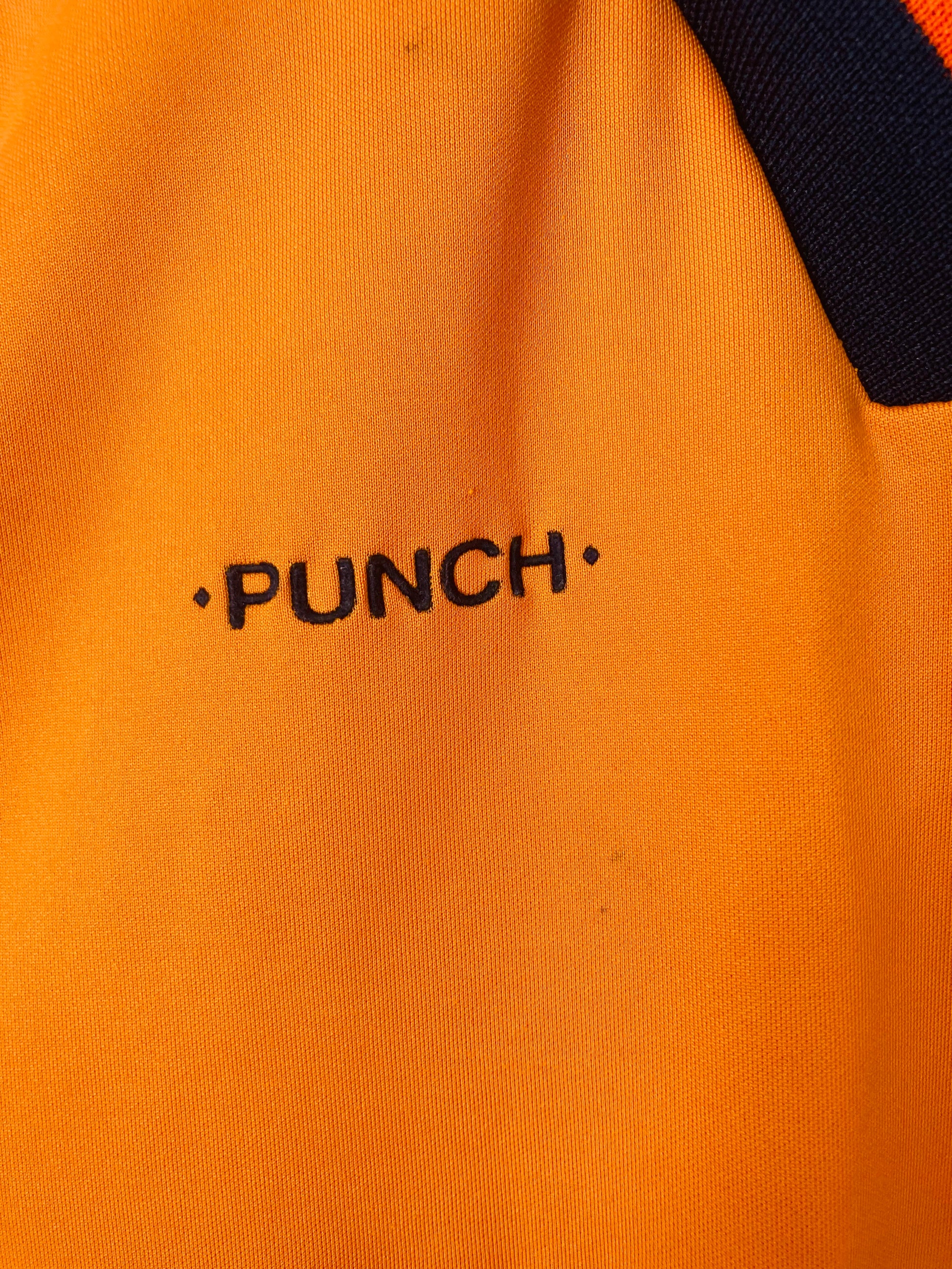 This shirt has seen some wear but is still in good condition. There may be some minor flaws such as light fading, small pulls, or faint stains, but these do not detract from the overall appearance or wearability of the shirt. A great choice for those looking to own a piece of football history at an accessible price.