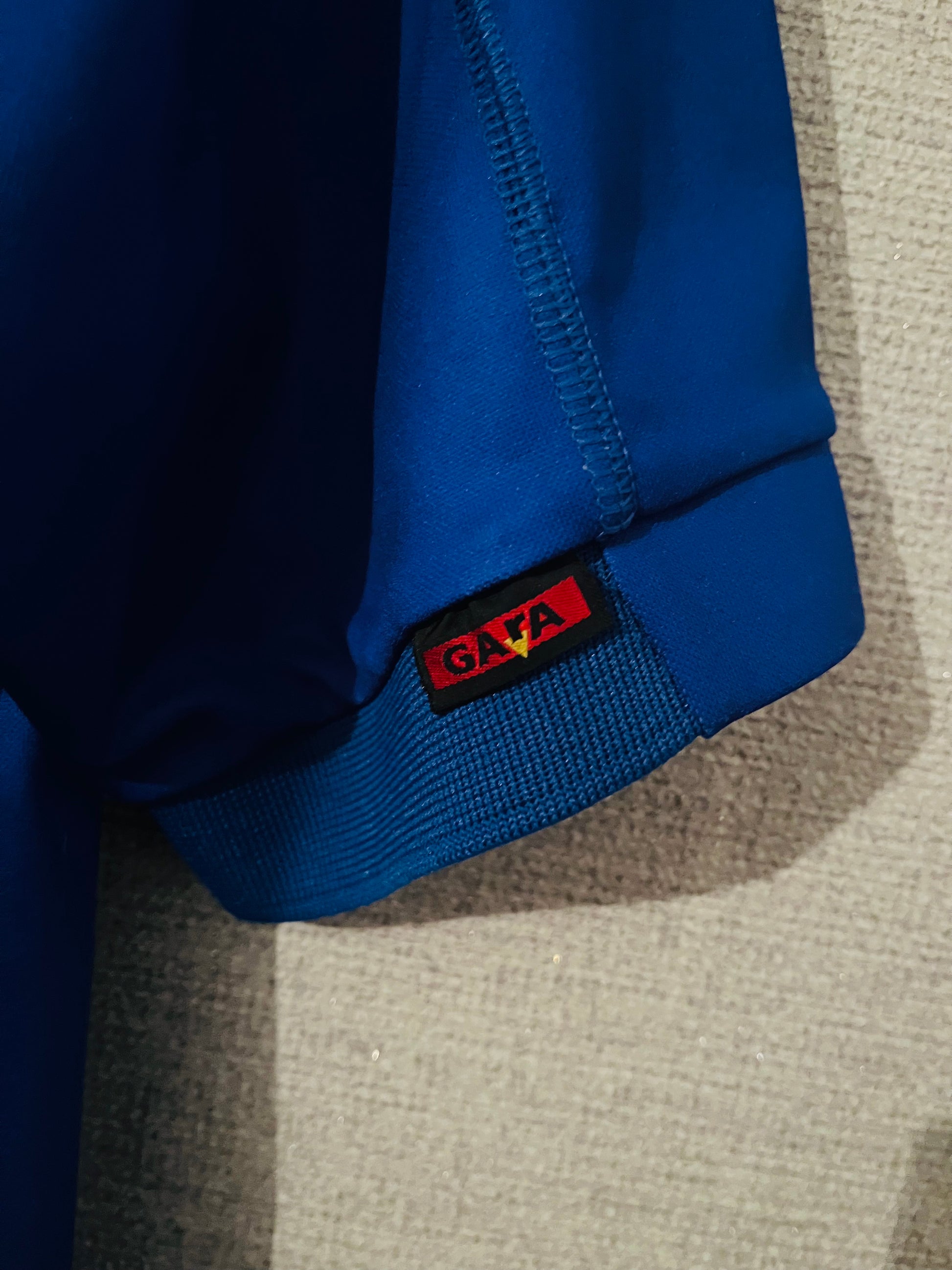 This shirt has seen some wear but is still in good condition. There may be some minor flaws such as light fading, small pulls, or faint stains, but these do not detract from the overall appearance or wearability of the shirt. A great choice for those looking to own a piece of football history at an accessible price.