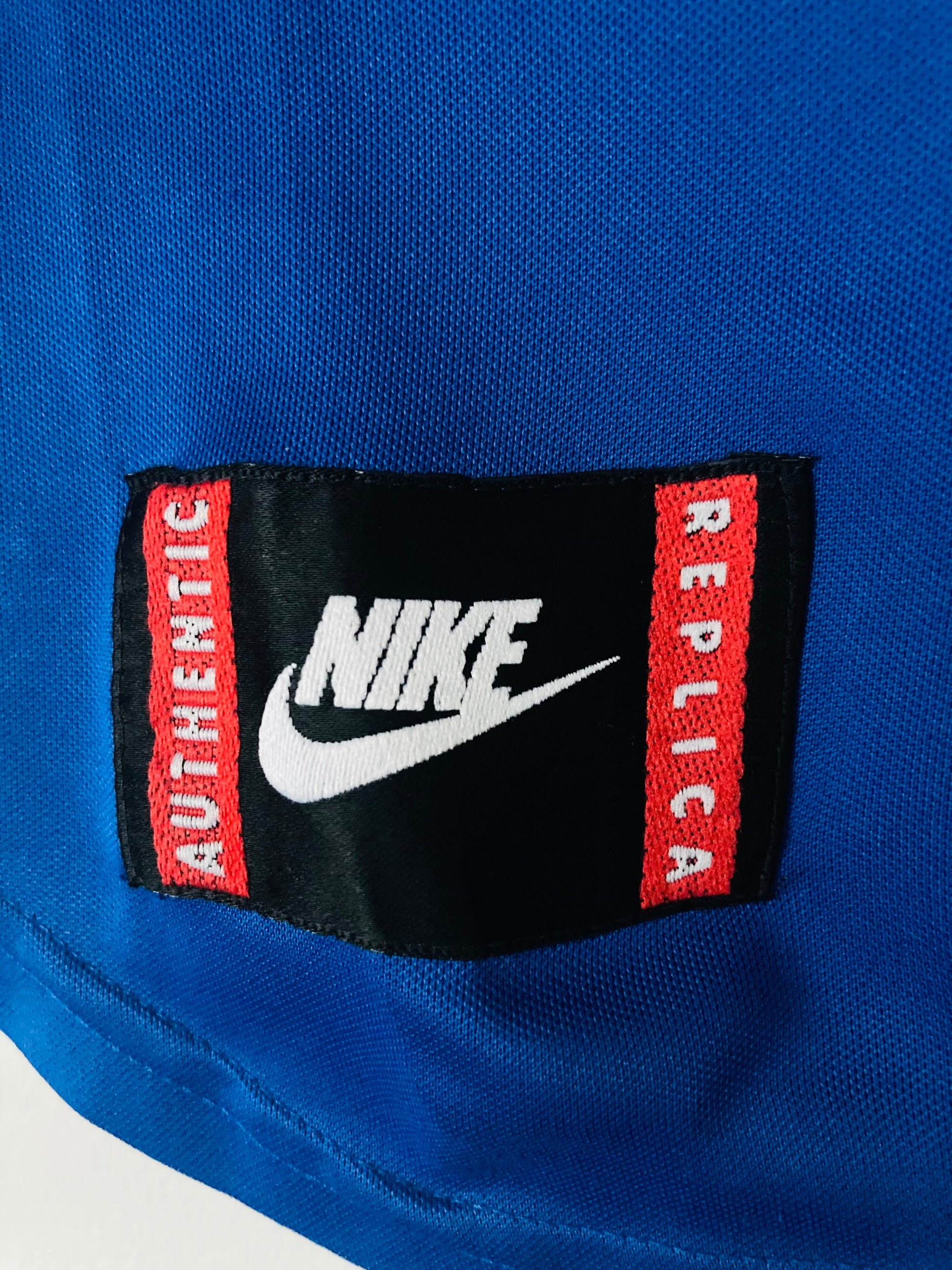 This shirt has seen some wear but is still in good condition. There may be some minor flaws such as light fading, small pulls, or faint stains, but these do not detract from the overall appearance or wearability of the shirt. A great choice for those looking to own a piece of football history at an accessible price.