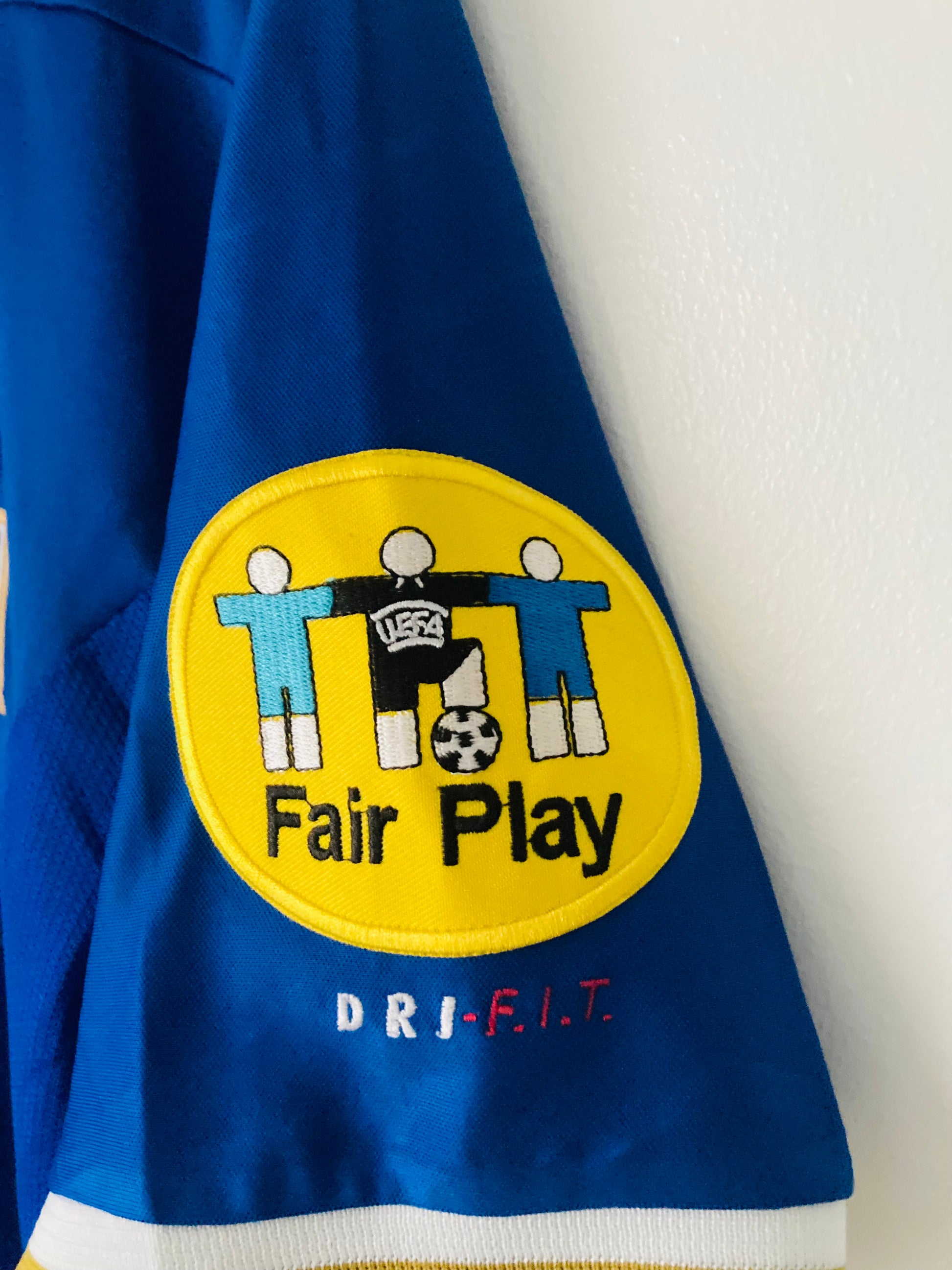 This shirt was worn by a player during an official match. It may show signs of use such as slight wear, grass stains, or minor fabric pulls, which only add to its authenticity and collectible value. These shirts are often one-of-a-kind and a prized piece of football history.