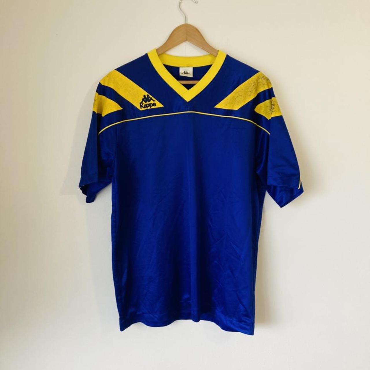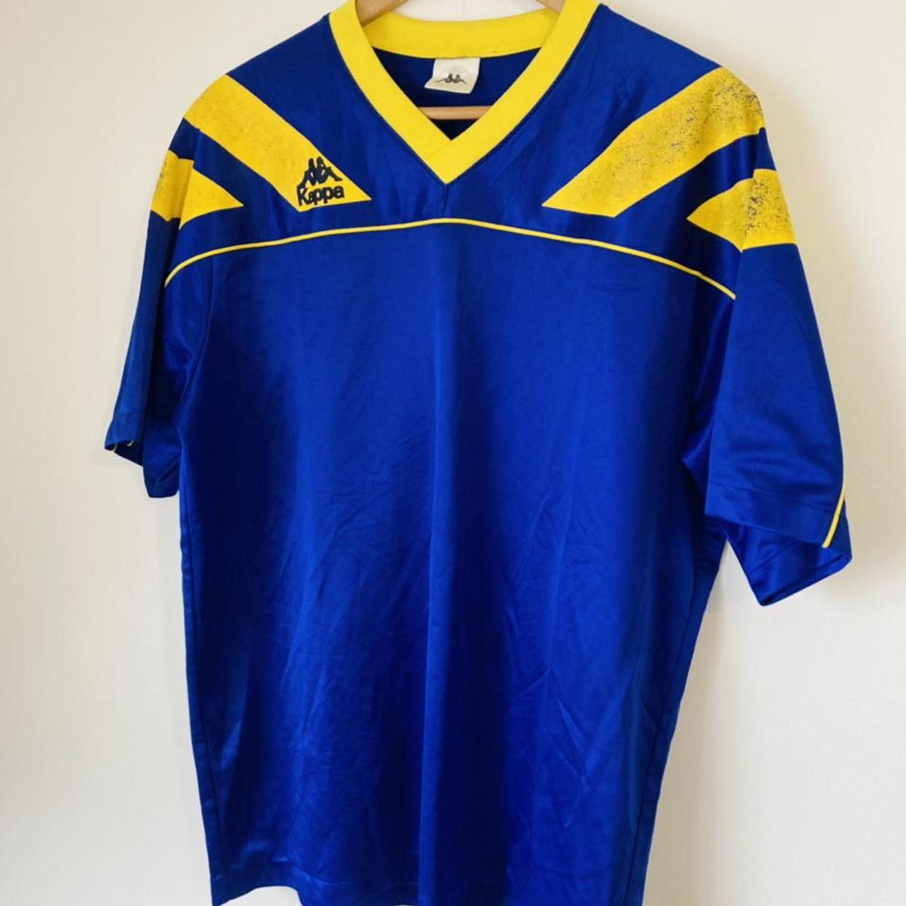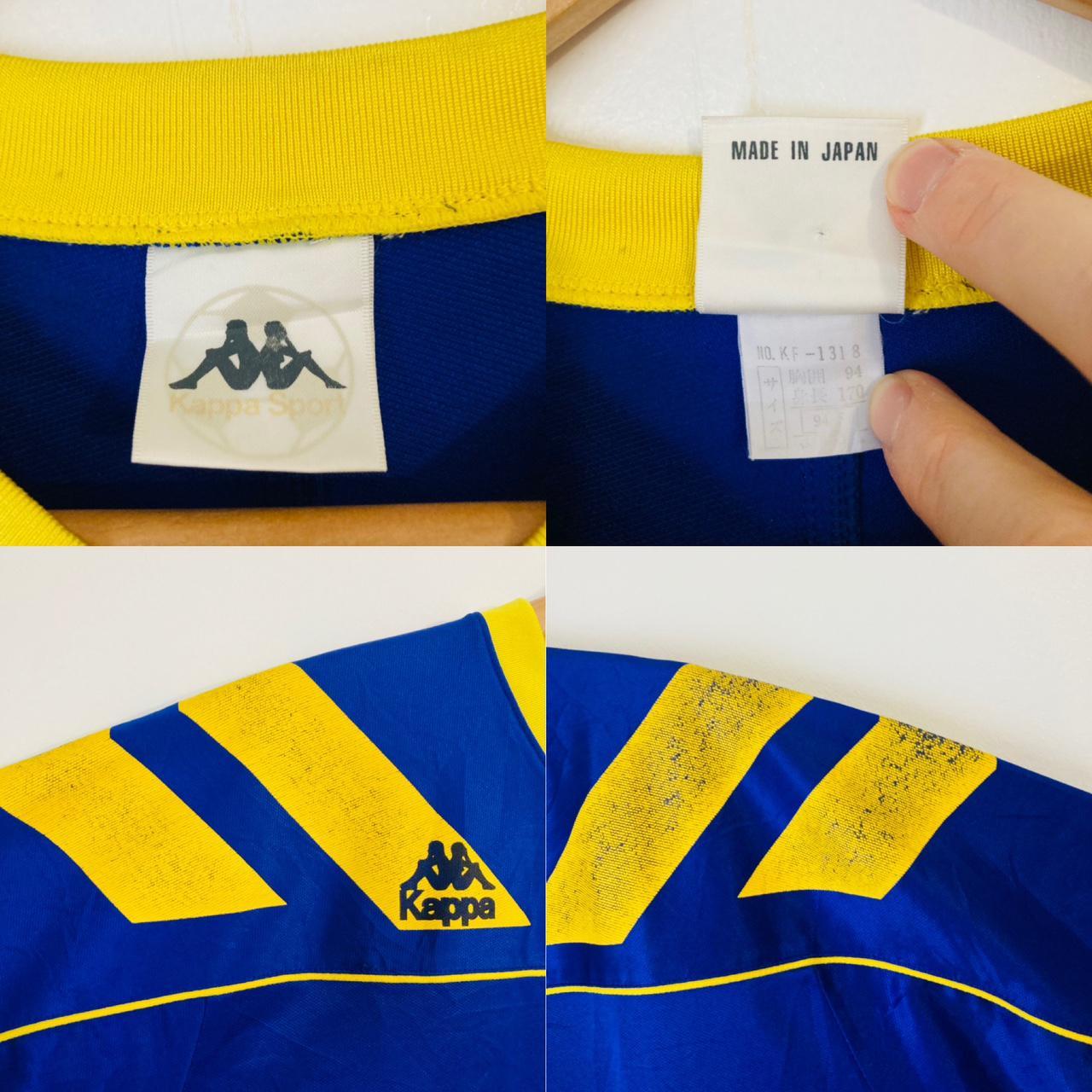This authentic Juventus FC training shirt from the 1992/1993 season is now available in size XL. The chest measures 23" and the length is 29". It is a classic, vintage design by Kappa and proudly made in Japan. Despite some wear on the yellow shoulder stripes, the overall condition is excellent.
