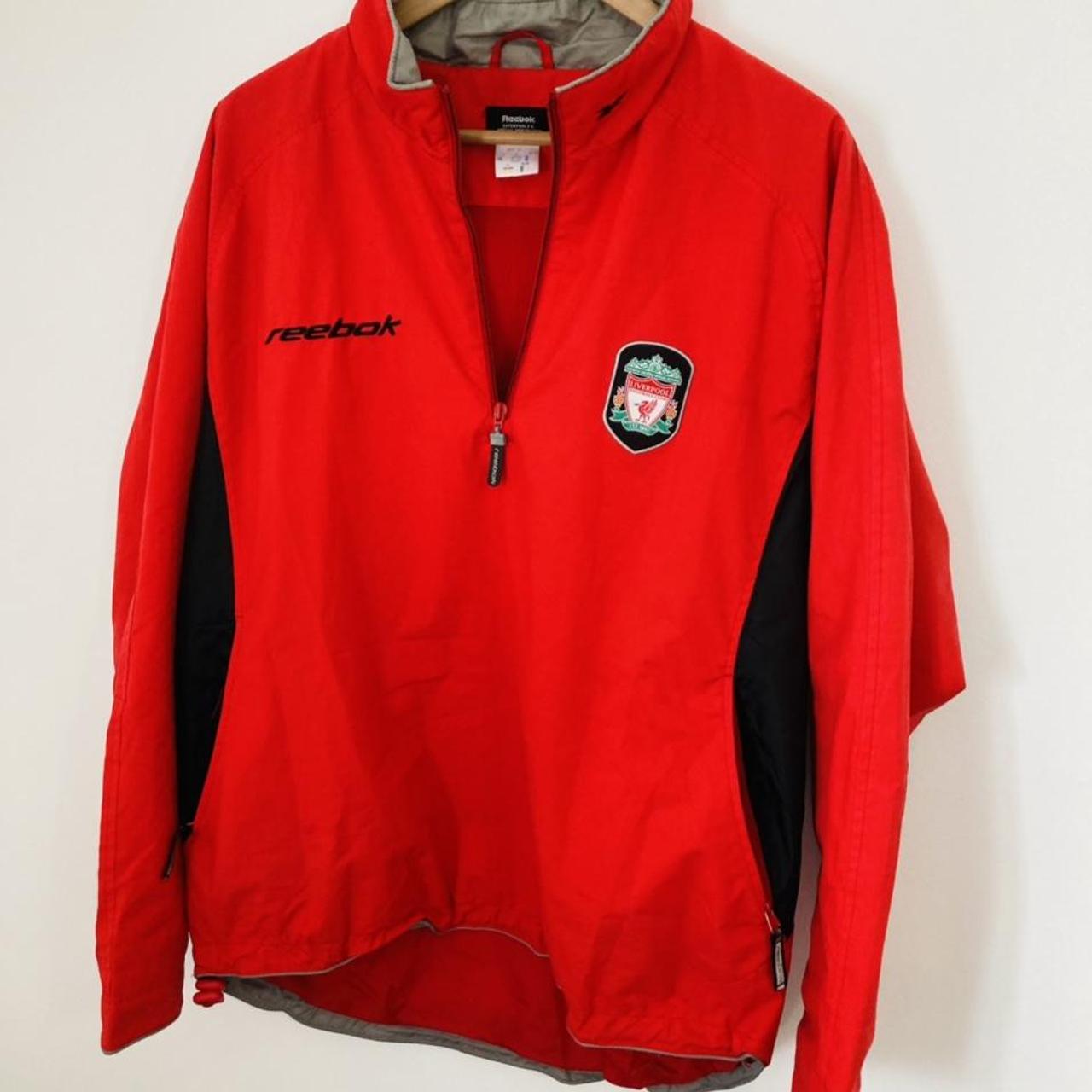 AUTHENTIC 1998/1999 Liverpool Red Training Jacket (S) - Classic, vintage, and official. Size small (label) with 22" chest and 27" length. Baggy fit for a small adult, perfect for a medium. 1/4 front centre zip, 2 zip side pockets, and adjustable drawstring waistband. Dual-layer mesh inside and waterproof outer layer. Excellently preserved.