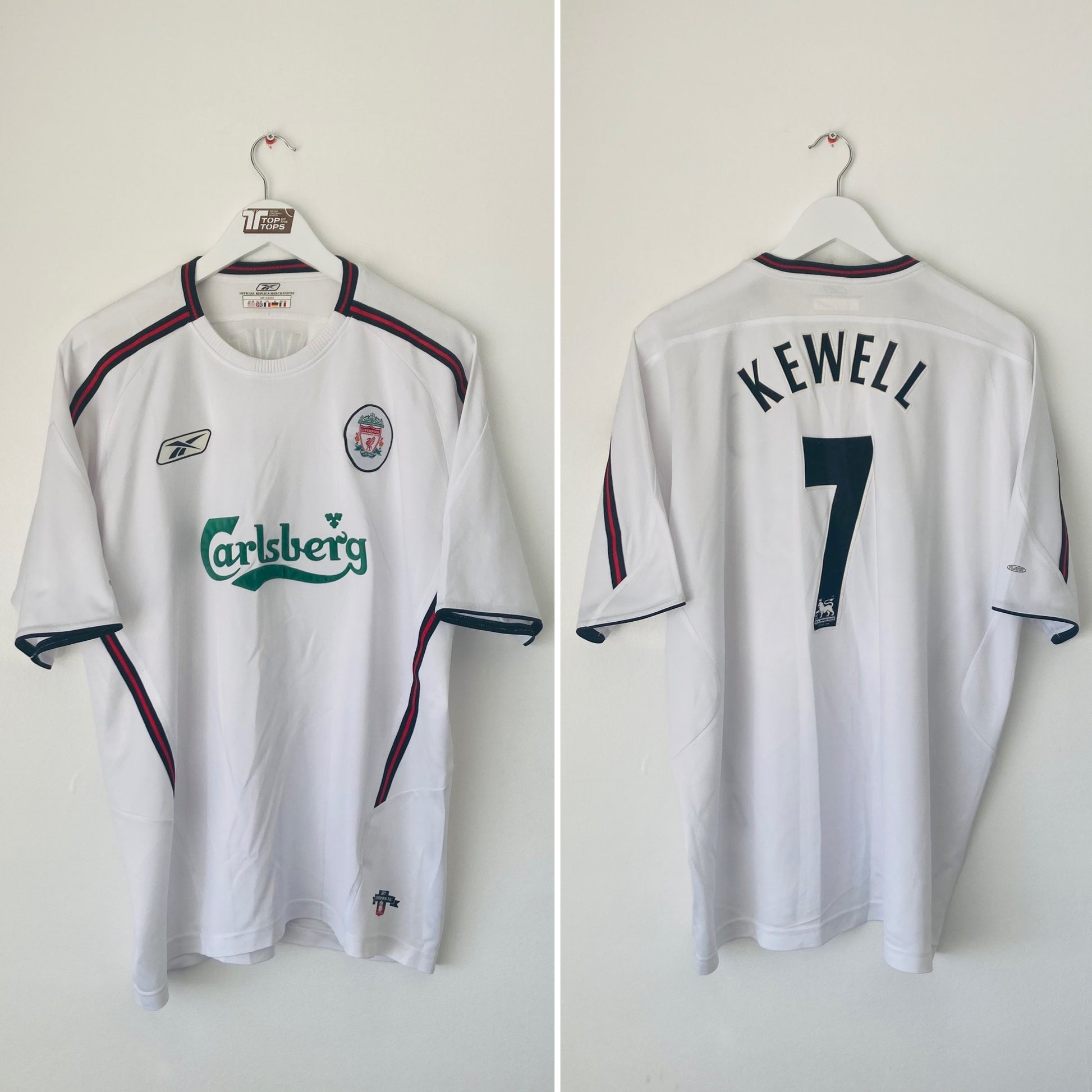premier league Harry Kewell 7 in felt/flock material on the back, as worn by #Kewell during these seasons for Liverpool.