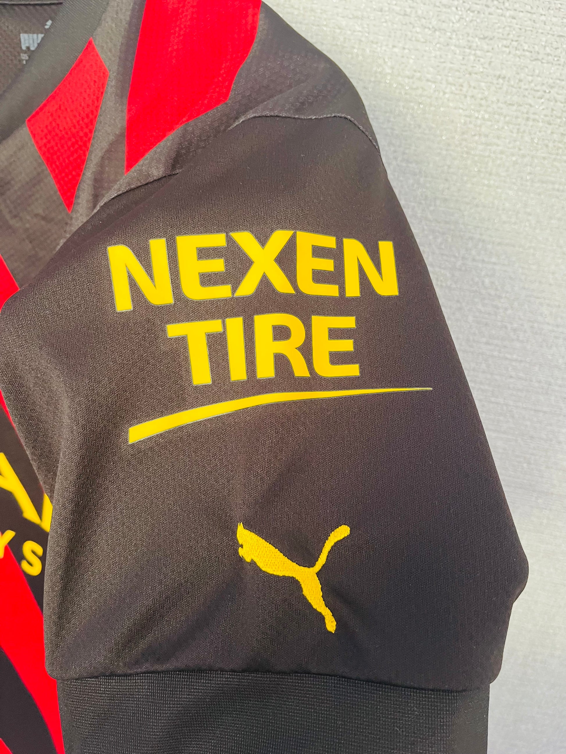 This shirt was worn by a player during an official match. It may show signs of use such as slight wear, grass stains, or minor fabric pulls, which only add to its authenticity and collectible value. These shirts are often one-of-a-kind and a prized piece of football history.