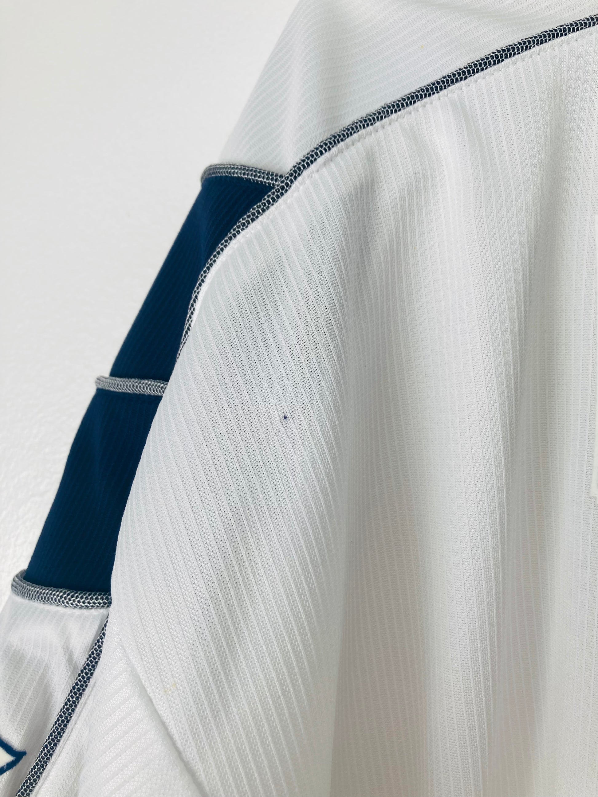 This shirt has seen some wear but is still in good condition. There may be some minor flaws such as light fading, small pulls, or faint stains, but these do not detract from the overall appearance or wearability of the shirt. A great choice for those looking to own a piece of football history at an accessible price.