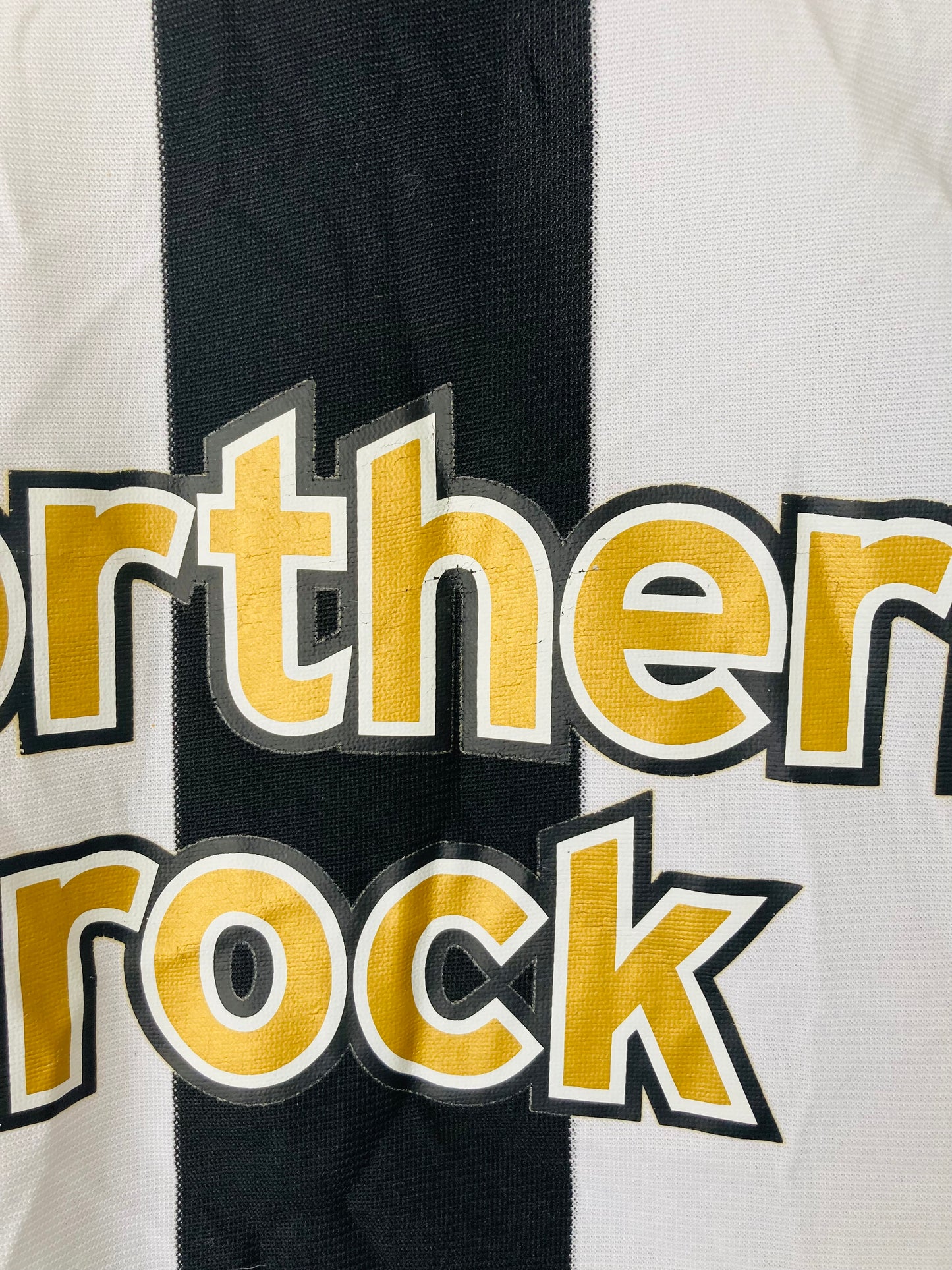This shirt has seen some wear but is still in good condition. There may be some minor flaws such as light fading, small pulls, or faint stains, but these do not detract from the overall appearance or wearability of the shirt. A great choice for those looking to own a piece of football history at an accessible price.