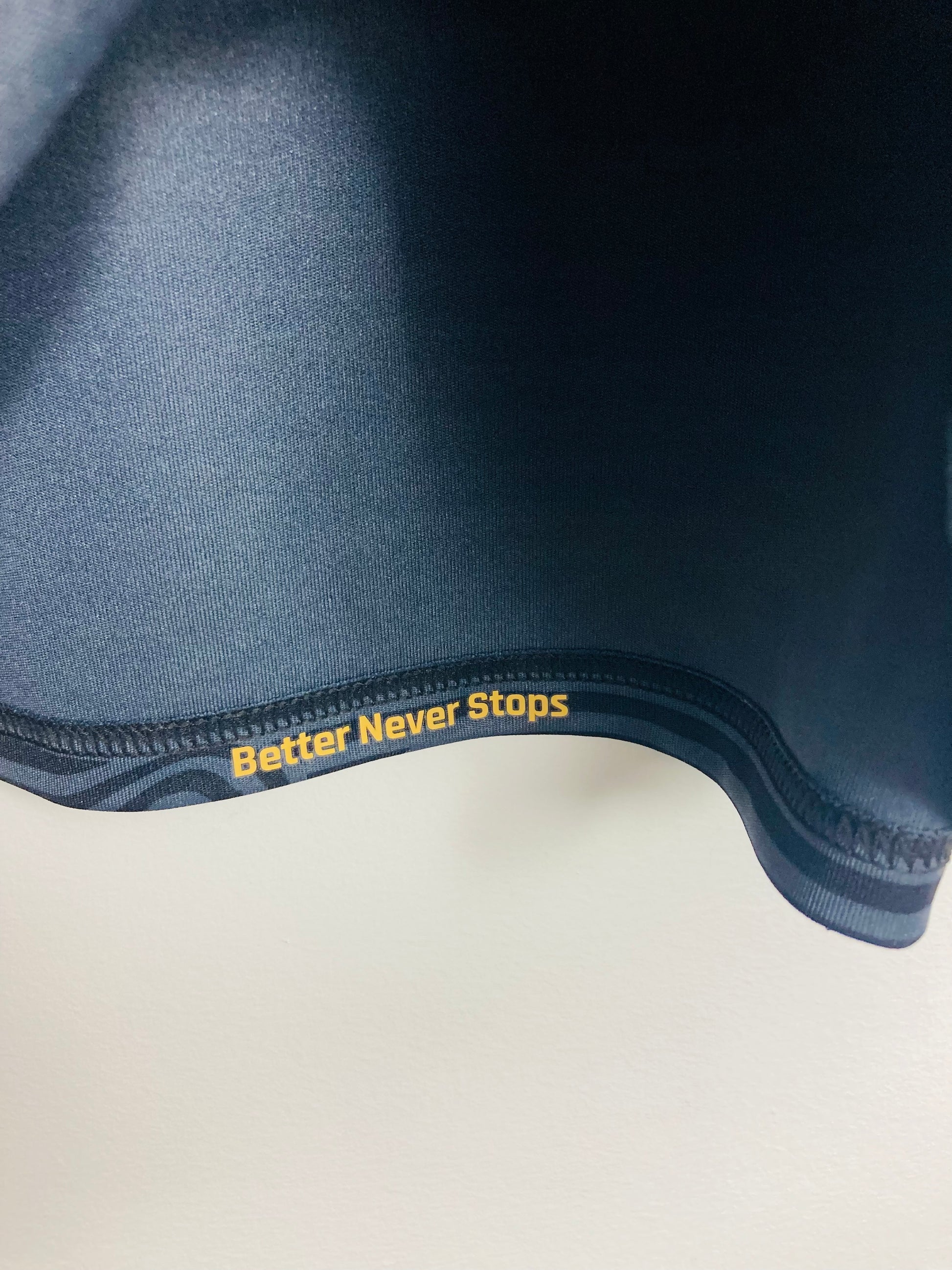 If ironing is necessary, turn the shirt inside out and use a cool setting. Never iron directly over printed areas or badges, as this can cause them to melt or peel.