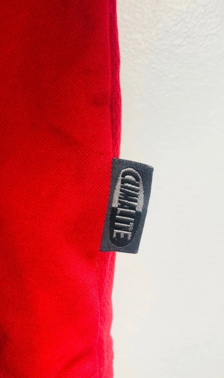 This shirt has seen some wear but is still in good condition. There may be some minor flaws such as light fading, small pulls, or faint stains, but these do not detract from the overall appearance or wearability of the shirt. A great choice for those looking to own a piece of football history at an accessible price.