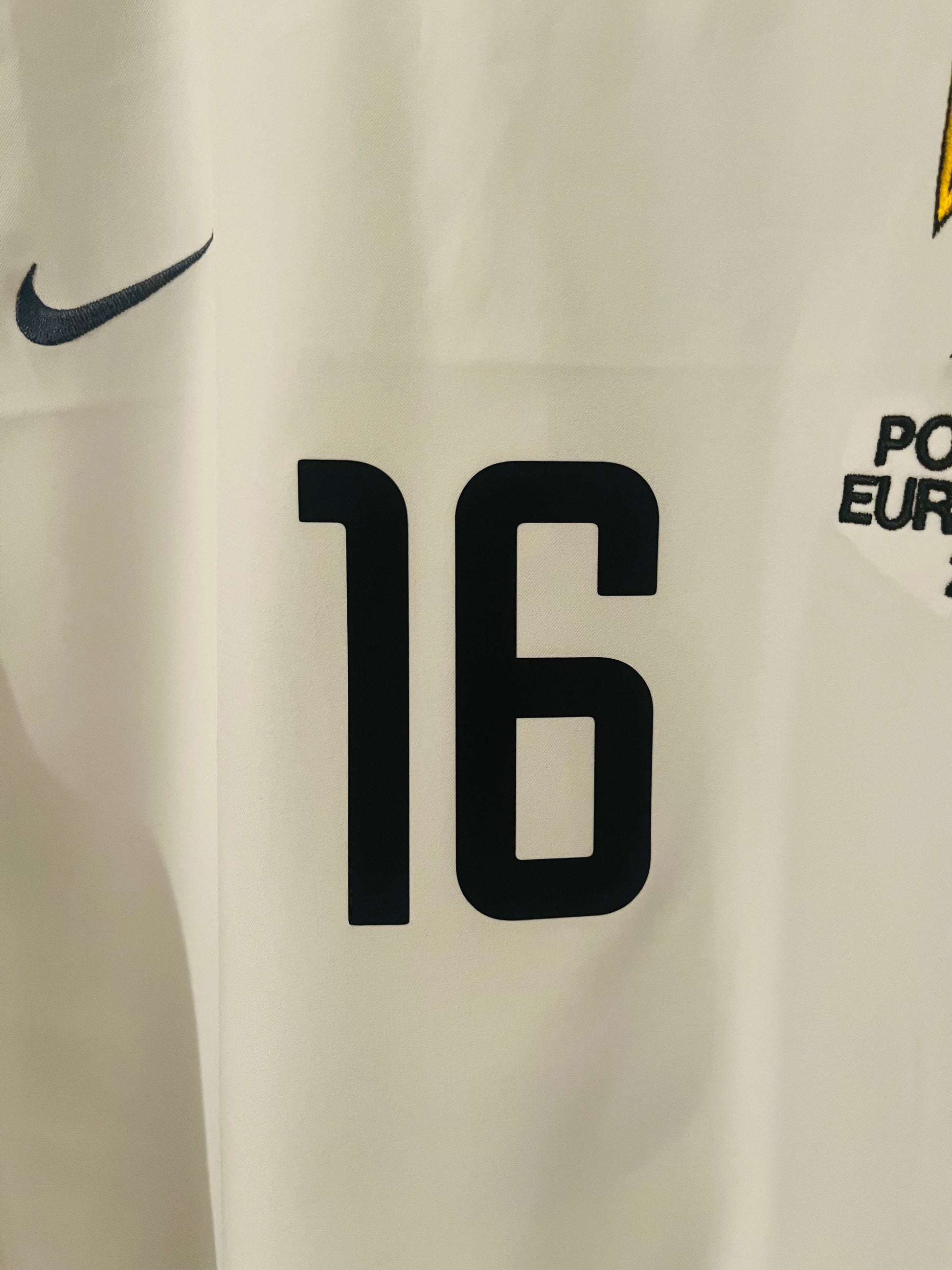 This shirt was worn by a player during an official match. It may show signs of use such as slight wear, grass stains, or minor fabric pulls, which only add to its authenticity and collectible value. These shirts are often one-of-a-kind and a prized piece of football history.