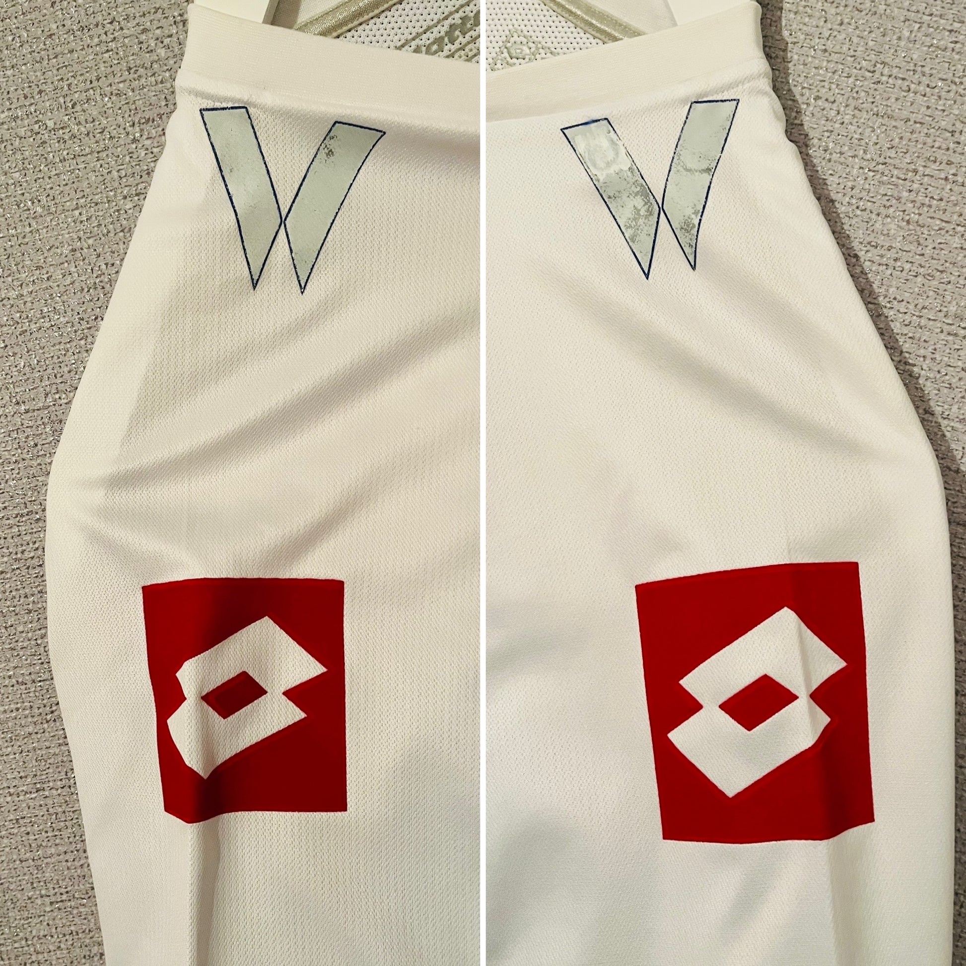 This shirt was worn by a player during an official match. It may show signs of use such as slight wear, grass stains, or minor fabric pulls, which only add to its authenticity and collectible value. These shirts are often one-of-a-kind and a prized piece of football history.