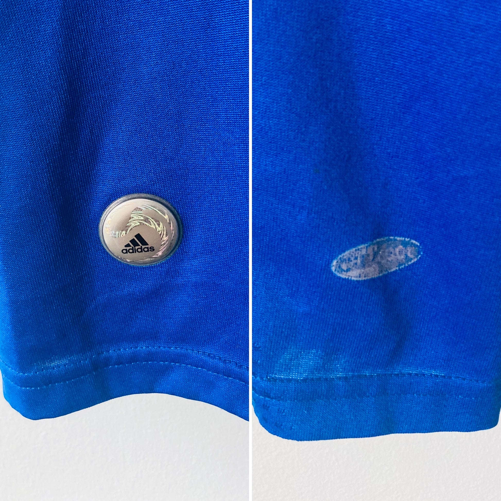 This shirt has seen some wear but is still in good condition. There may be some minor flaws such as light fading, small pulls, or faint stains, but these do not detract from the overall appearance or wearability of the shirt. A great choice for those looking to own a piece of football history at an accessible price.